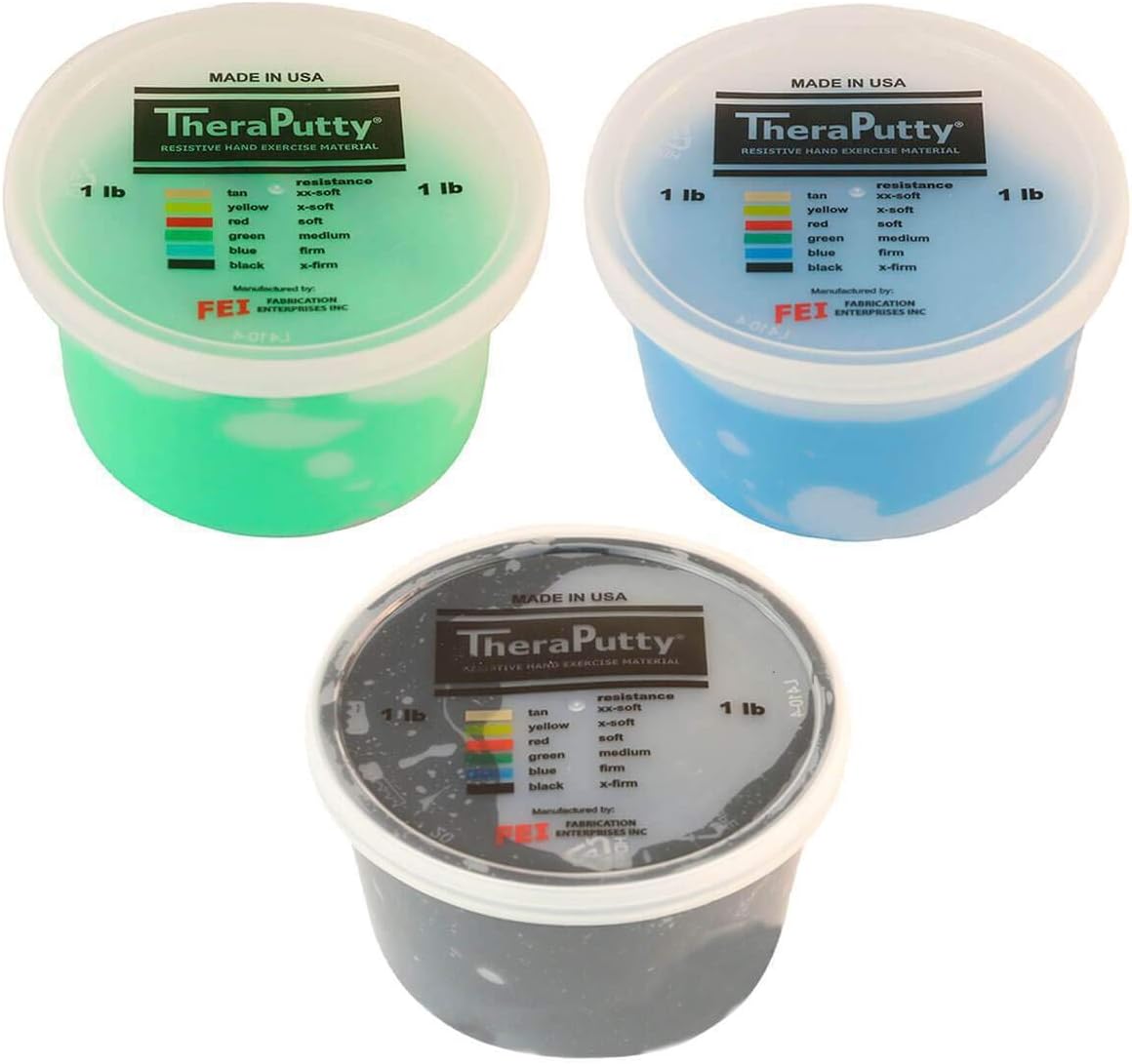 • SIX DIFFERENT FIRMNESS LEVELS - Regardless of your hand strength, there is a TheraPutty option for you! TheraPutty is available in 6 color-coded firmness levels ranging from xx-soft (tan) to x-firm (black).