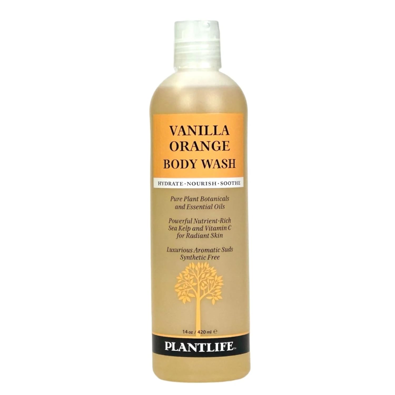 Plantlife Vanilla Orange Body Wash - GMO and Gluten Free Gentle and Moisturizing Body Wash That Contains Only Ingredients Straight from Nature - Manufactured in the USA 14 oz