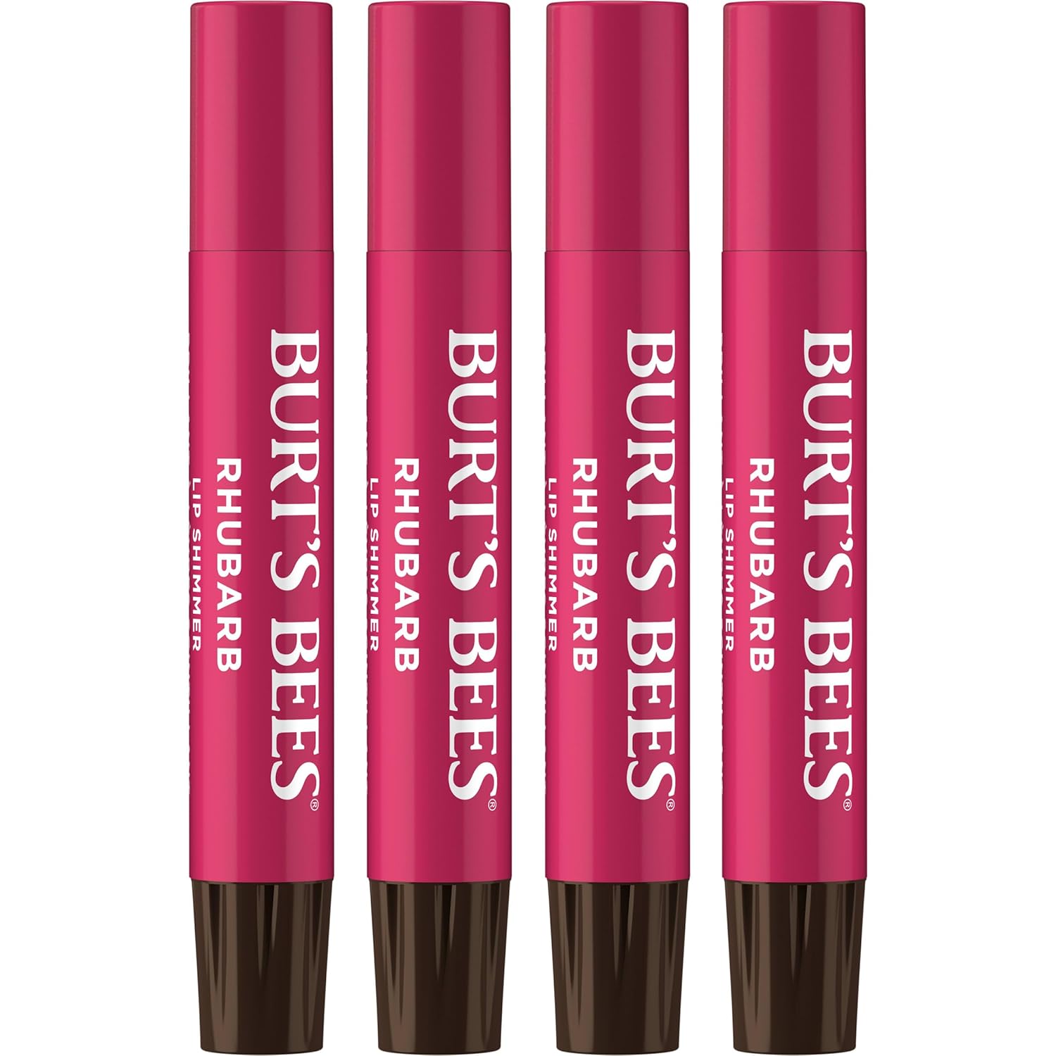 - SHIMMER AND SHINE: Burt’s Bees Lip Shimmer Rhubarb provides the perfect hint of luminescent color for shimmering, vibrant lips in a bright shade (Packaging May Vary)