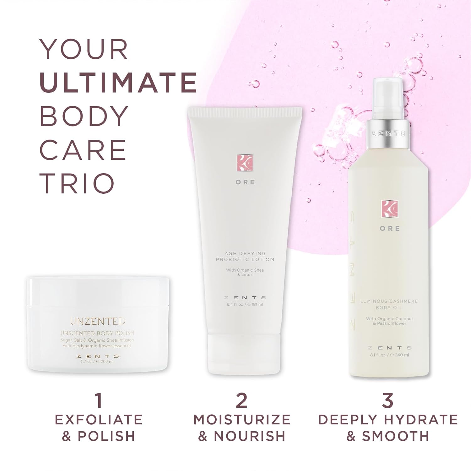 Zents Luminous Cashmere Body Oil (Ore Fragrance) | Moisturizing Body Oil with Vitamin E & Organic Coconut Oil | Softens & Smooths Skin | 8 fl oz