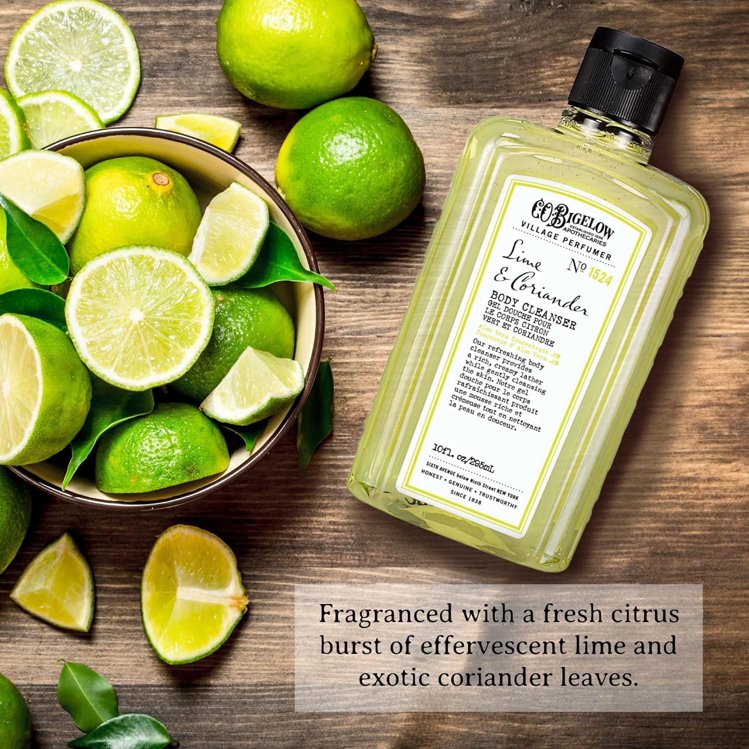 C.O. Bigelow Lime Coriander Body Wash, Village Perfumer Moisturizing Body Wash with Aloe Vera, 10 Fl Oz