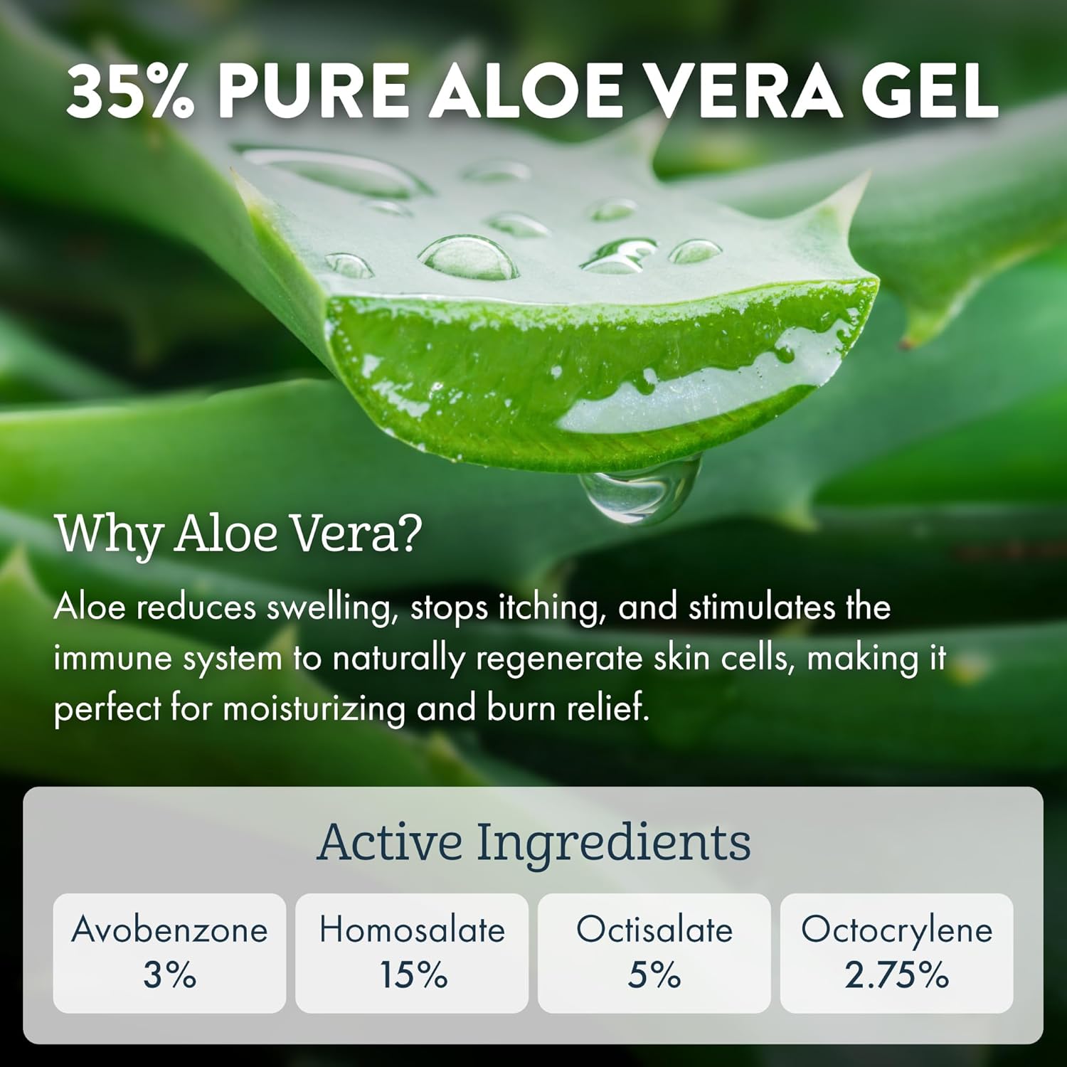 - FAST-DRYING FORMULA: Aloe Up's cutting-edge ingredients guarantee a moisturizing experience with an even application. The pure aloe vera carries the sunscreen into the pores, bonding to the underside of the epidermis rather than sitting on top of the skin. This process stimulates the natural regeneration of skin cells and provides a comfortable, non-greasy feel you and your family won't find anywhere else.