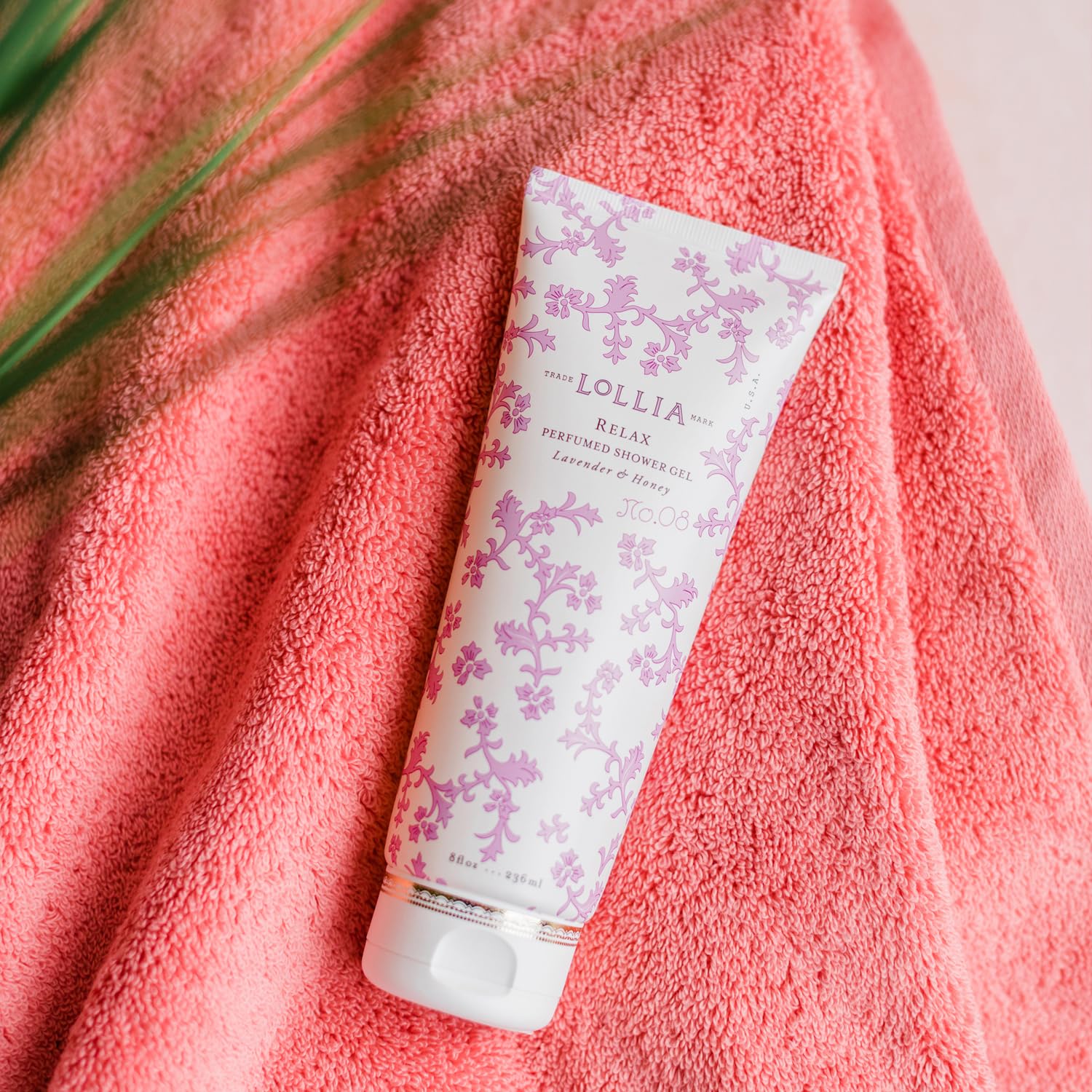 LOLLIA Relax Shower Gel, 8 fl. oz. – Lavender & Honey – Scented Shower Gel, Shea Butter Body Wash, Bath Wash for Women, Moisturizing Body Wash