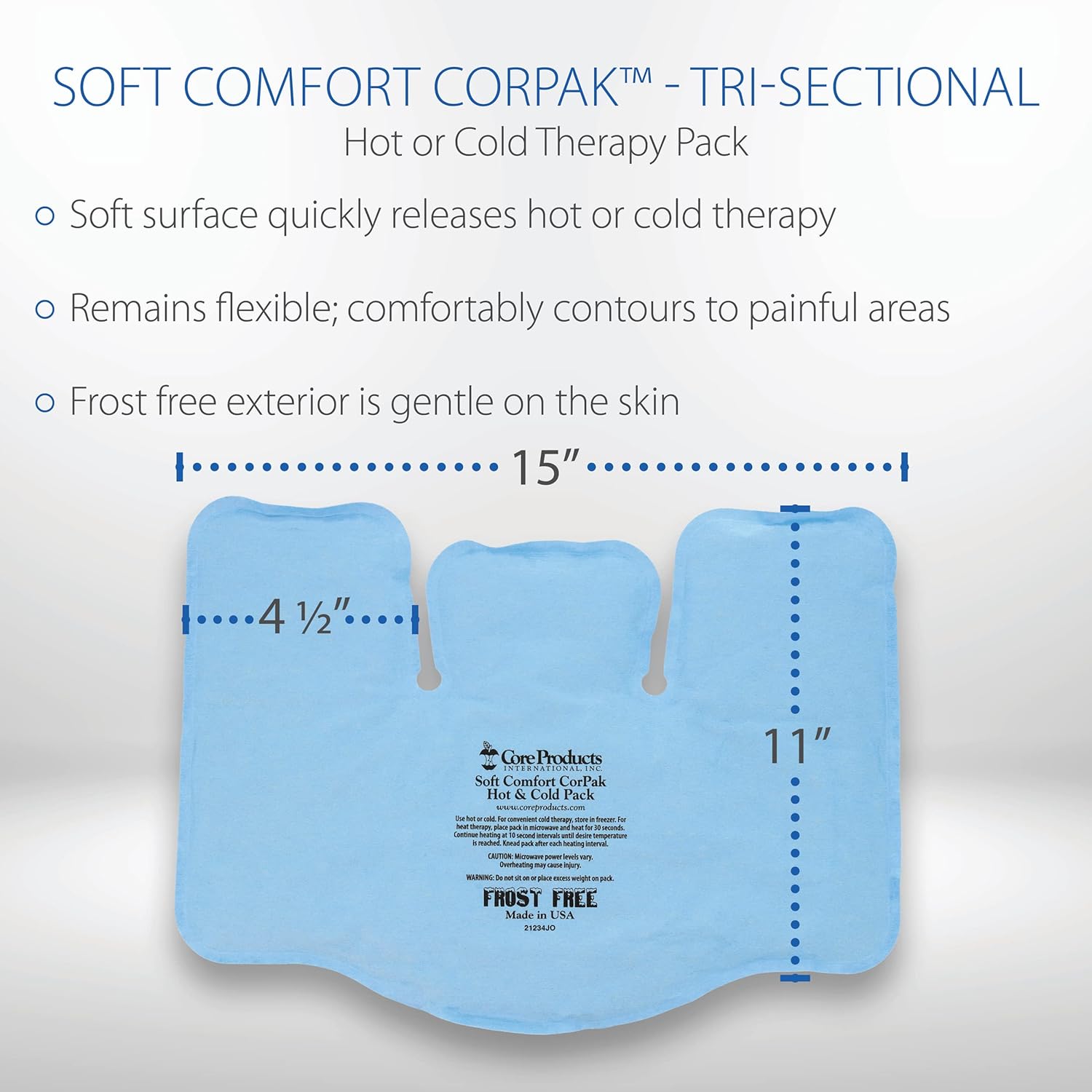 - MADE IN THE USA - Soft Comfort CorPaks Hot or Cold Therapy Packs are a versatile solution to help relieve headaches, ease pain, and help reduce inflammation associated with strains, sprains, and other soft tissue injuries