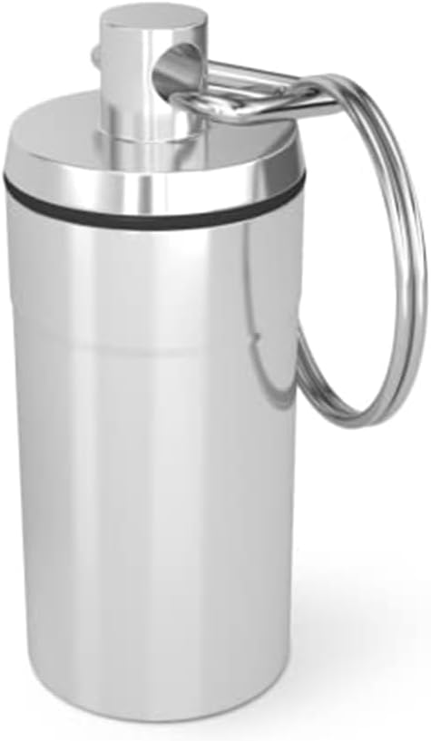 EZY DOSE Keychain Pill Box and Medicine, Vitamin Container, Safe for Money & Travel Items, Metal Canister, Medium Compartments, Various, BPA Free