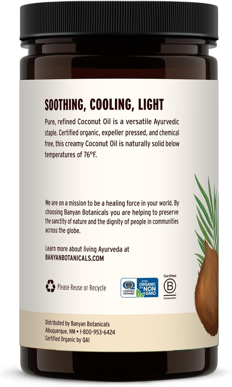 Banyan Botanicals Coconut Oil – Expeller Pressed Organic Coconut Oil – Massage Oil for Naturally Hydrated Skin and Hair – 30 oz – Refined, Non GMO, Sustainably Sourced