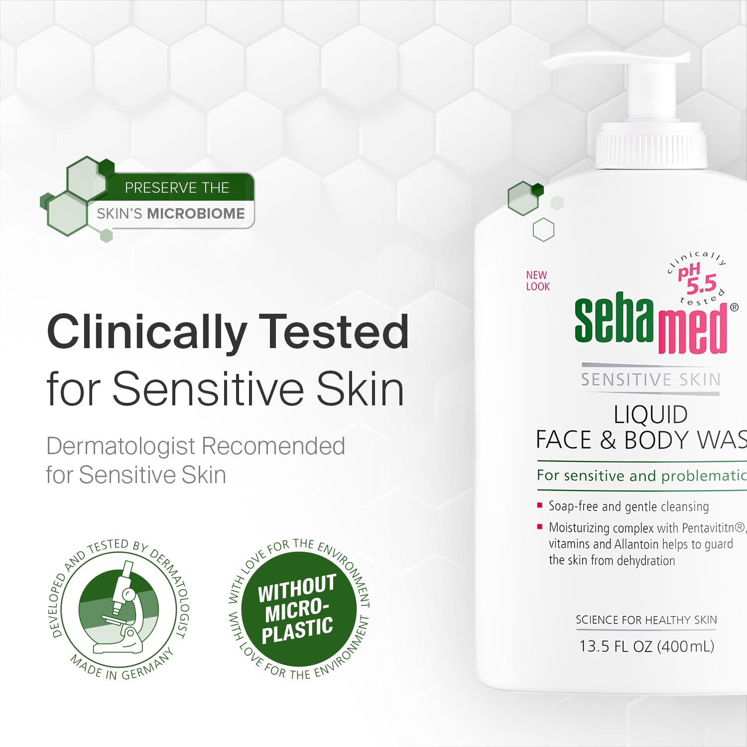 - CLINICALLY FORMULATED FOR MEN & WOMEN – Developed by German dermatologists, Liquid Face & Body Wash is fortified with a special vitamin blend (B5, B3, B6, and Biotin), hydrating and patented Pentavitin, Panthenol for supporting cell regeneration, and soothing Allantoin. We keep our products paraben free and delicately scented for even the most allergy-prone customers. And with over 150 clinical studies we’ve made sure our product is formulaically effective for both men and women.