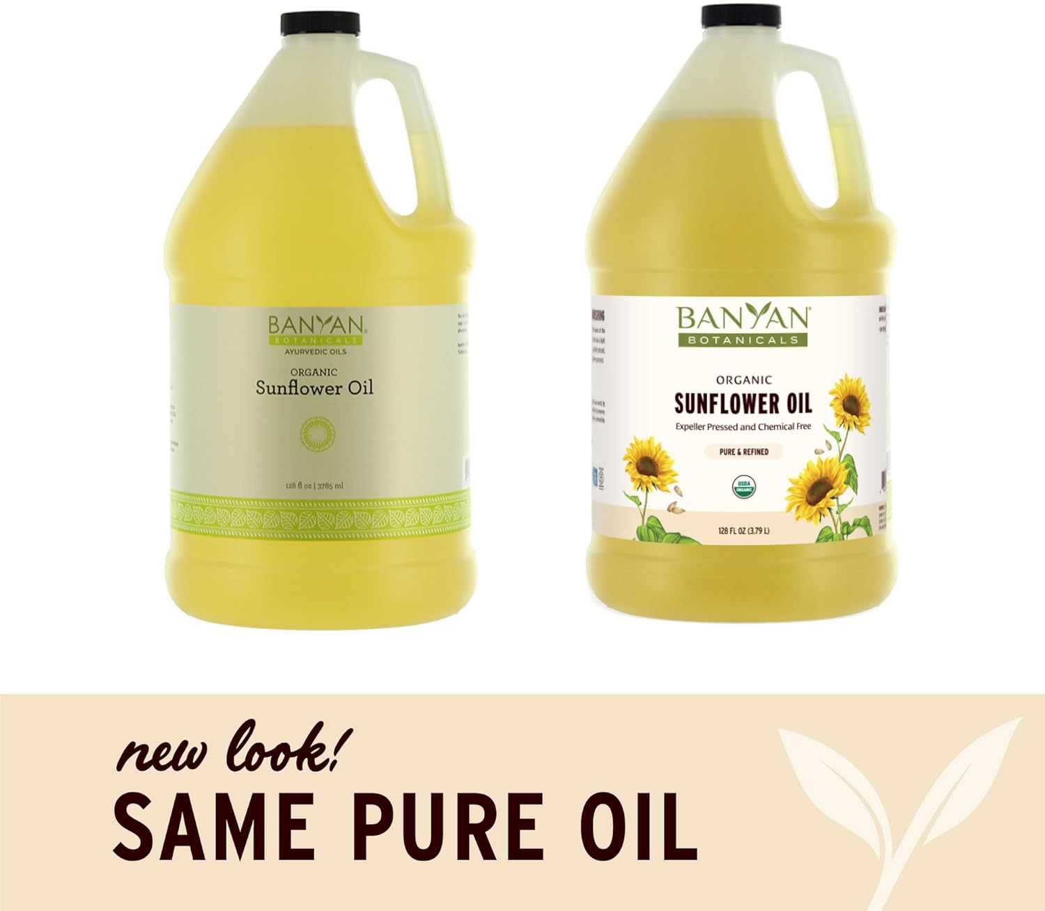 Banyan Botanicals Sunflower Oil – Pure & Organic Sunflower Seed Oil for Skin, Body, Hair & More – Multiple Sizes – 128 oz – Expeller Pressed Non GMO Chemical Free