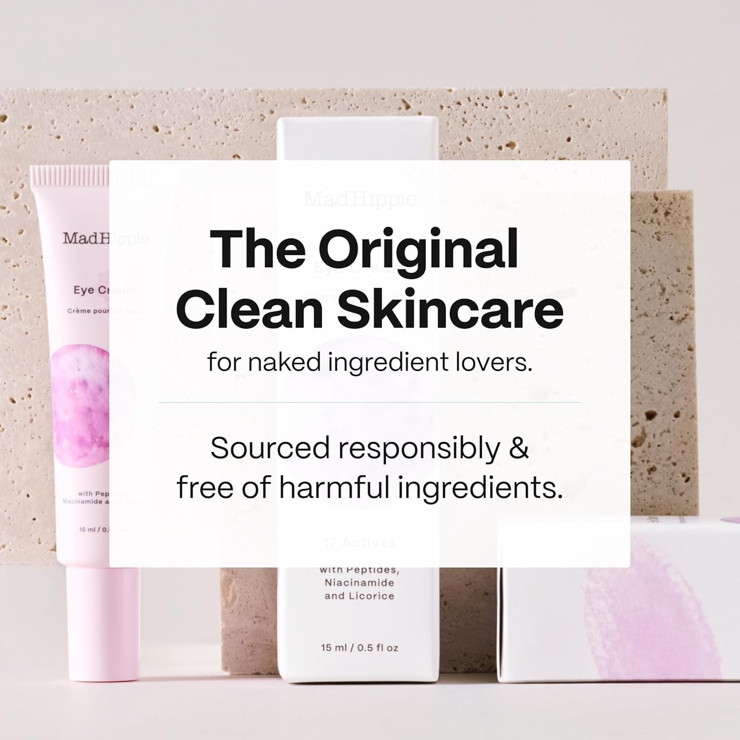 Mad Hippie Eye Cream - Anti-Aging Under Eye Cream for Dark Circles and Puffiness with Niacinamide, Peptides, Kakadu Plum & Licorice, Eye Treatment with Skin-Brightening Vitamin C, 0.5 Oz