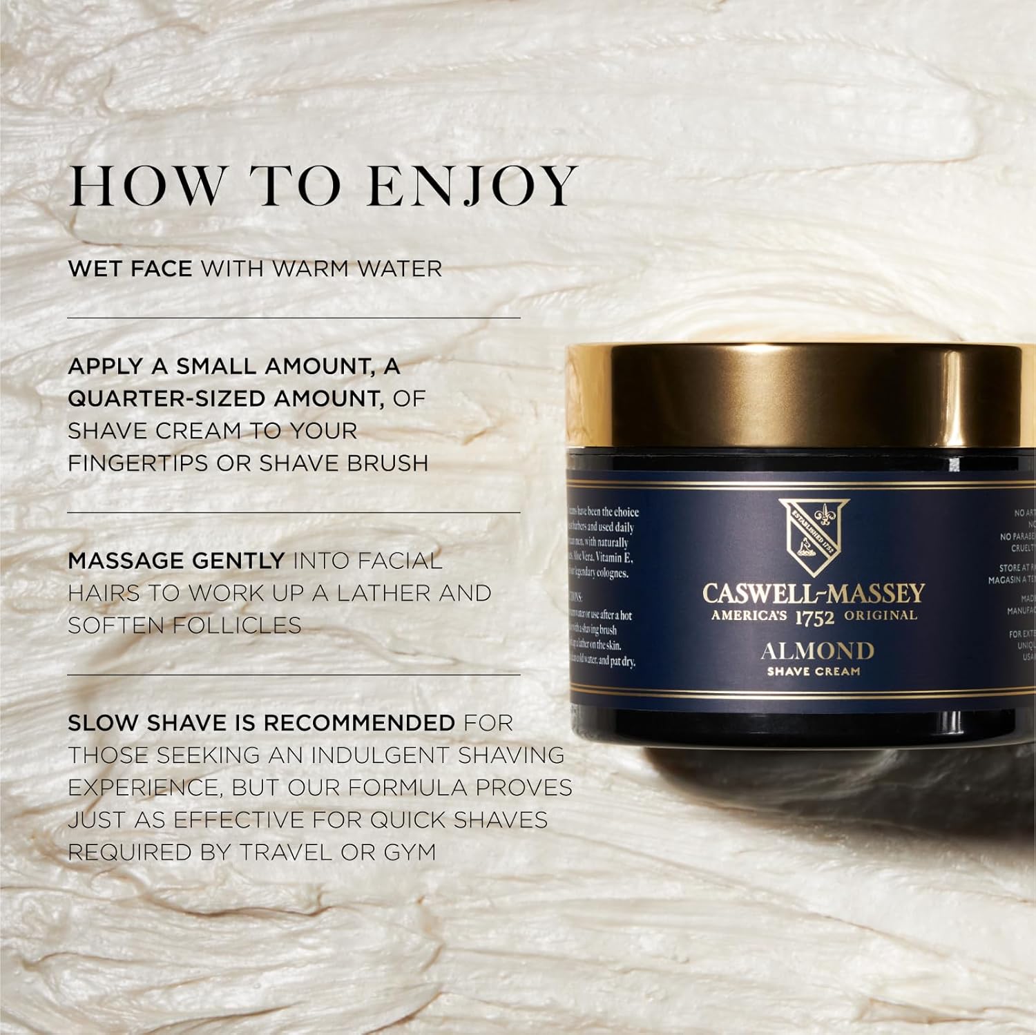 Caswell-Massey Heritage Almond Shave Cream, Natural Men’s Shaving Cream for Smooth Beard Shaving, Soothing for Sensitive Skin, USA Made, 8 Fl Oz