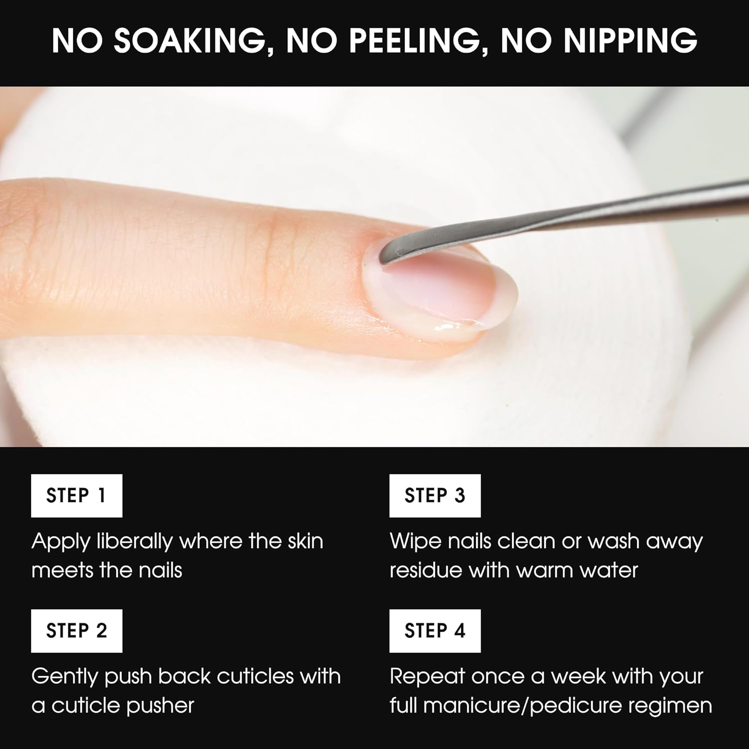 - EASY TO USE: Apply liberally where the skin meets the nails. Using the Cuticle Pusher or an orangewood stick (sold seperately), gently push cuticles back toward the knuckle. Once complete, wipe nails clean with a piece of cotton. Repeat once a week.