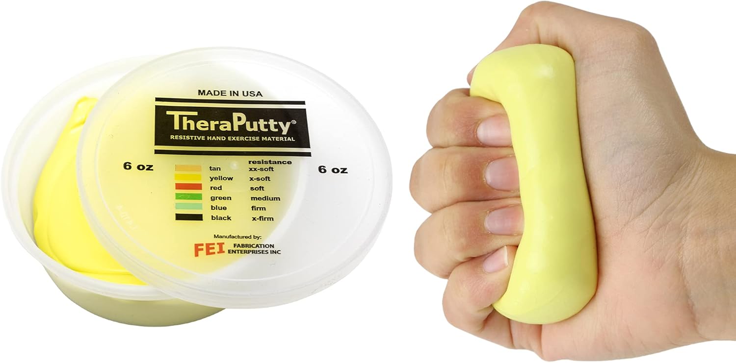 - EASY-TO-USE - With TheraPutty, there is no setup required. Simply open the easy-to-open container, grab the amount of TheraPutty you want to use, and you're ready to go. Don't worry about mess because TheraPutty stays together without crumbling.
