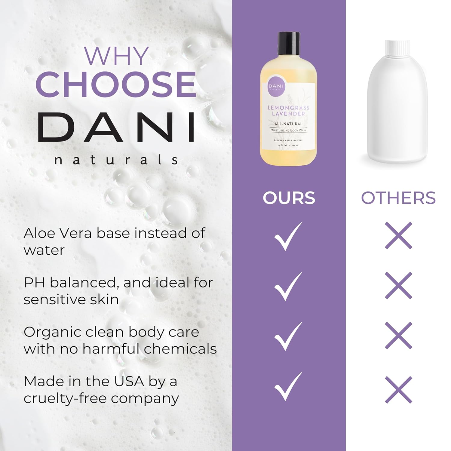 DANI Naturals Moisturizing Body Wash - Calming Lemongrass Lavender Scent with Organic Aloe Vera & Natural Glycerin - Paraben, Sulfate, & Phthalate-Free Shower Gel - 12 oz Bottle, Vegan & Cruelty-Free