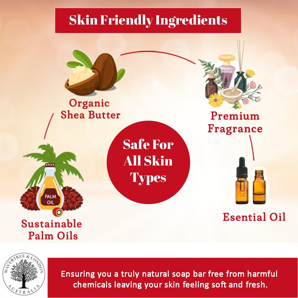 - 📋 Ingredients: Sustainable Palm oil, Palm Kernel Oil, Aqua (water), Certified Organic Shea Butter, Vegetable Glycerin, Essential Oils and/or Fragrance, Sodium Gluconate (natural sugar-based preservative), Sodium Chloride, Titanium Dioxide (food grade)