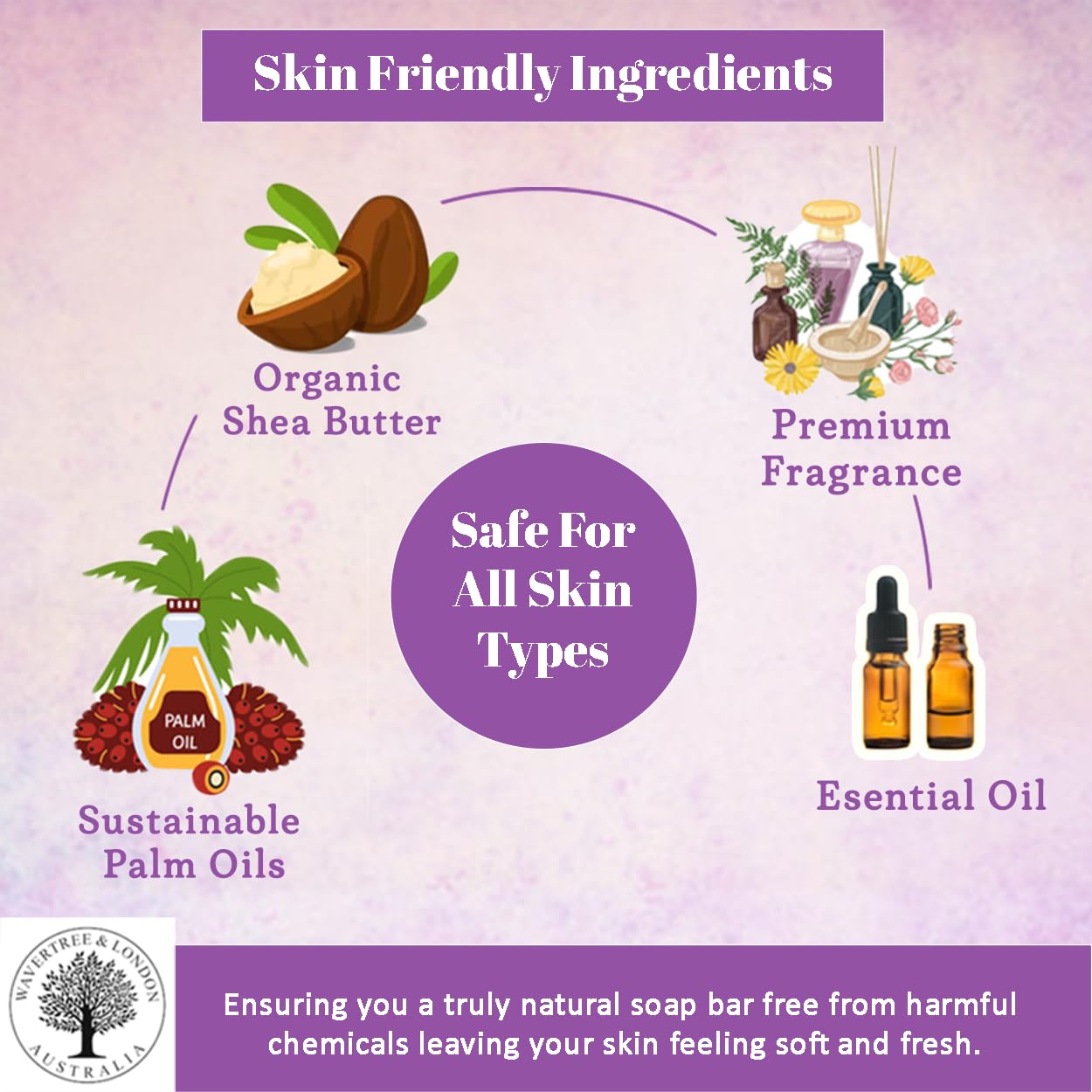 - 📋 Ingredients: Sustainable Palm oil, Palm Kernel Oil, Aqua (water), Certified Organic Shea Butter, Vegetable Glycerin, Essential Oils and/or Fragrance, Sodium Gluconate (natural sugar-based preservative), Sodium Chloride, Titanium Dioxide (food grade)