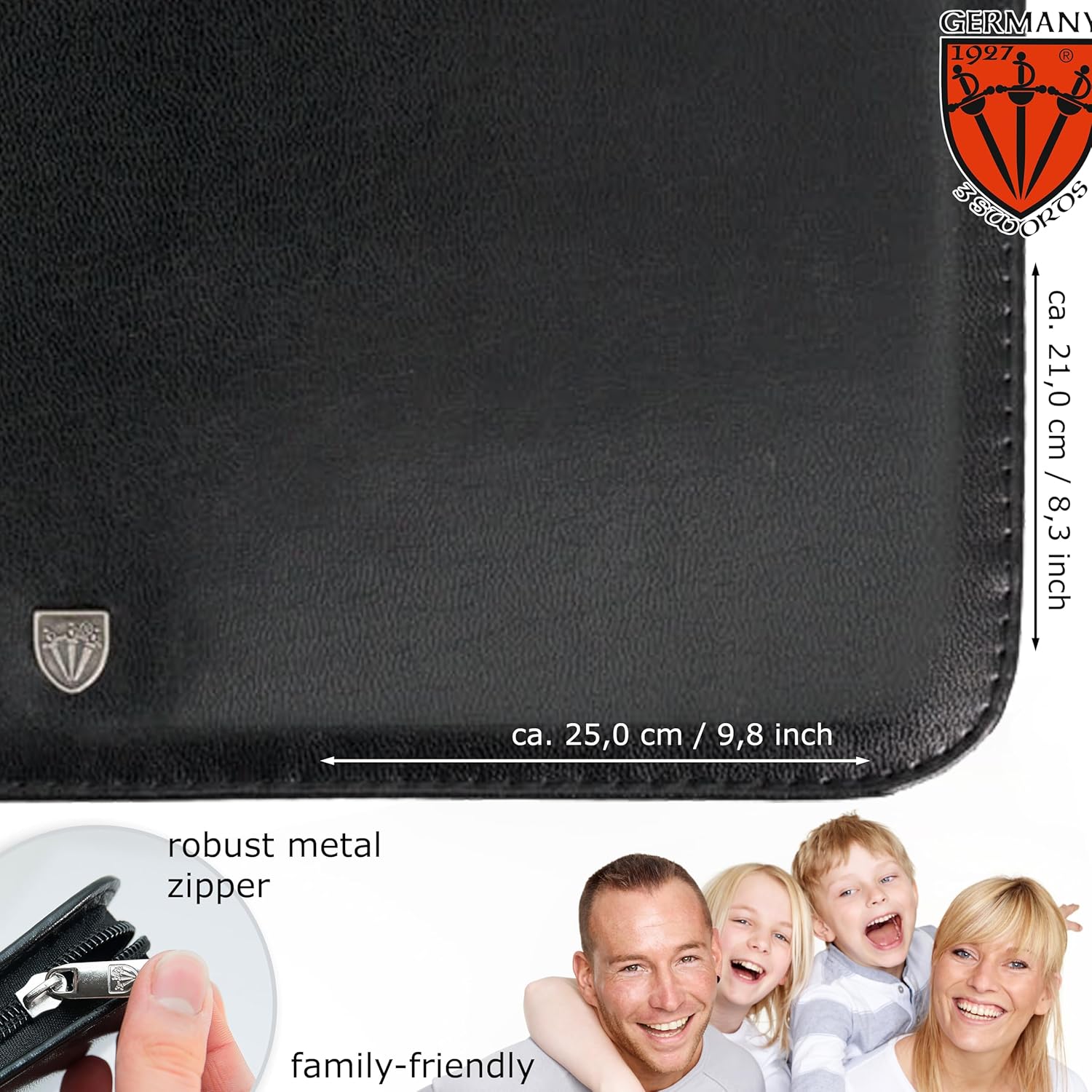 - CASE: Fashion leather black, size ca. 25,5 x 21,0 x 3,0 cm. Our organizers are made of high-grade fashion or classic materials. Additional equipment: Microfiber cleaning cloth for cleaning steel items, general info sheet āFinger - Nail Groomingā.