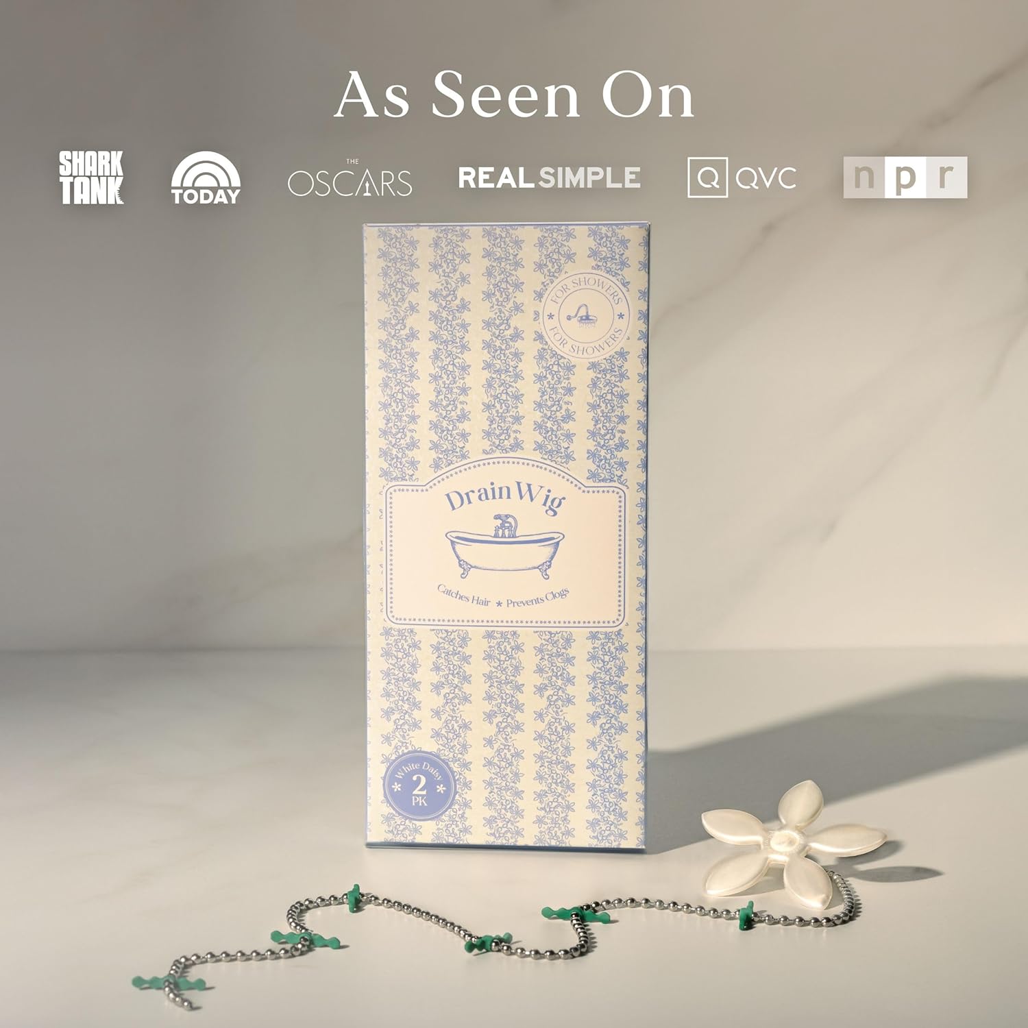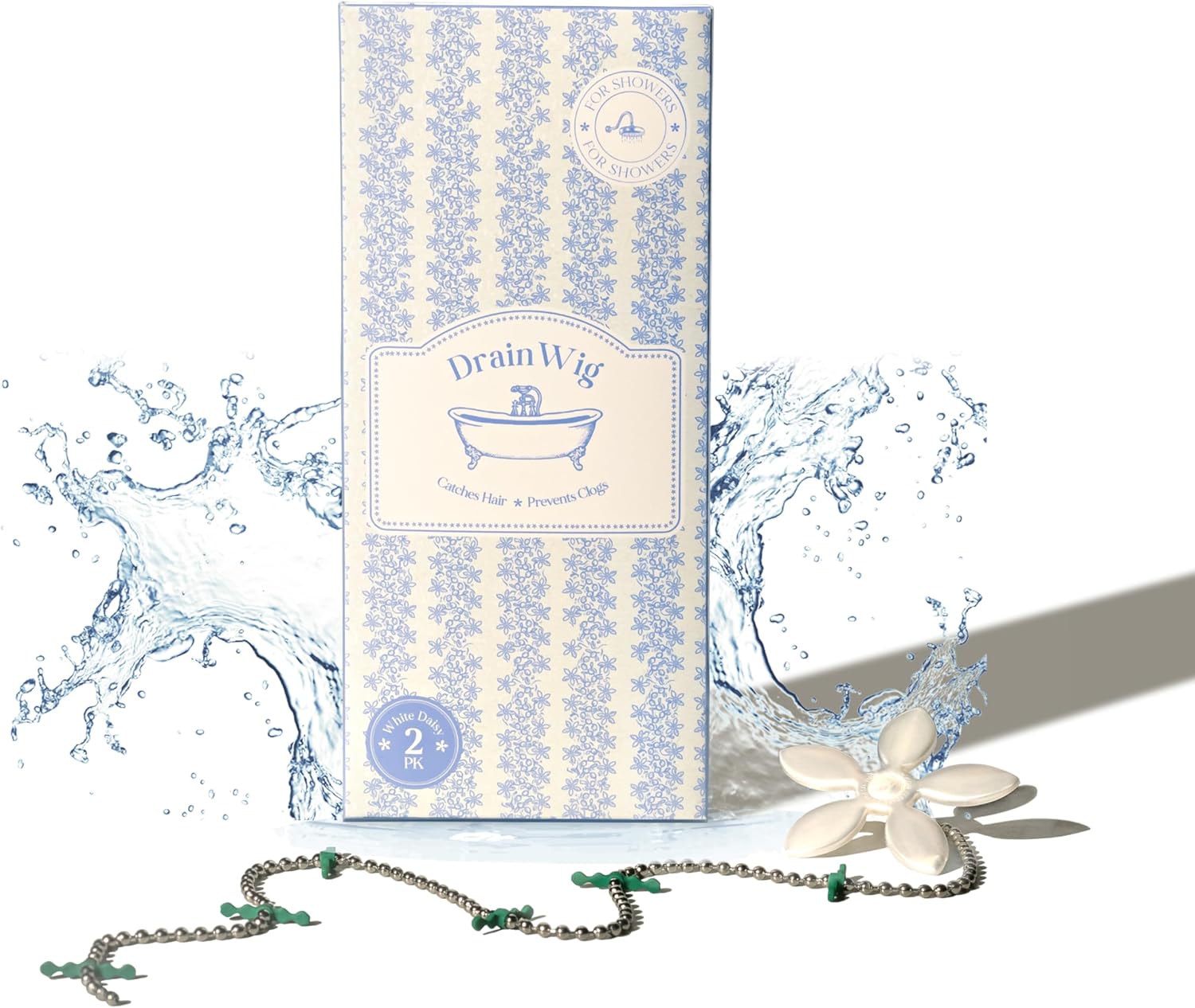 DrainWig Shower Drain Hair Catcher – Disposable White Flower (2-Pack) – No-Touch Hair Removal for Flat Shower Drains – As Seen on Shark Tank