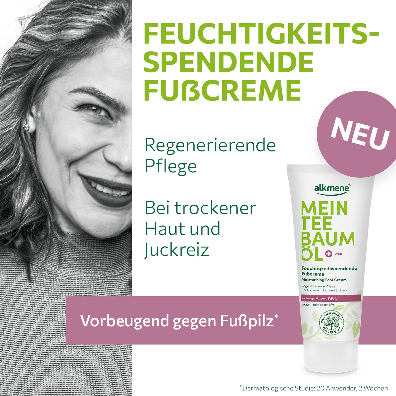 - Deeply Hydrating - Walk in pampered comfort with Alkmene Tea Tree Oil Foot Cream! Our feet moisturizer is rich in tea tree essential oil, panthenol, and shea butter. Together, they help soothe and moisturize dry, chapped skin, ensuring lasting freshness and a natural silky foot.