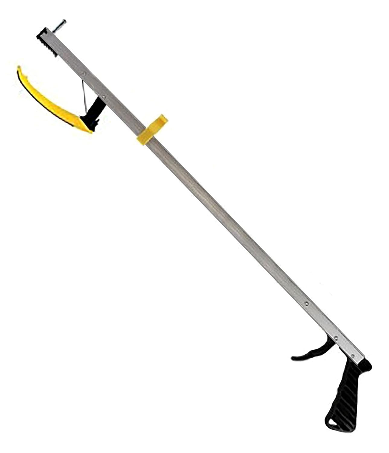 - EXTEND YOUR REACH: Features 32" Long reacher grabber built up with lightweight aluminum with ergonomic handle for comfortable grip. Magnetic tip helps pick up small objects and Fitted with post to assist with dressing. Yellow clip fastens reachers to canes, walkers, wheelchairs and hospital bed rails to keep them nearby.