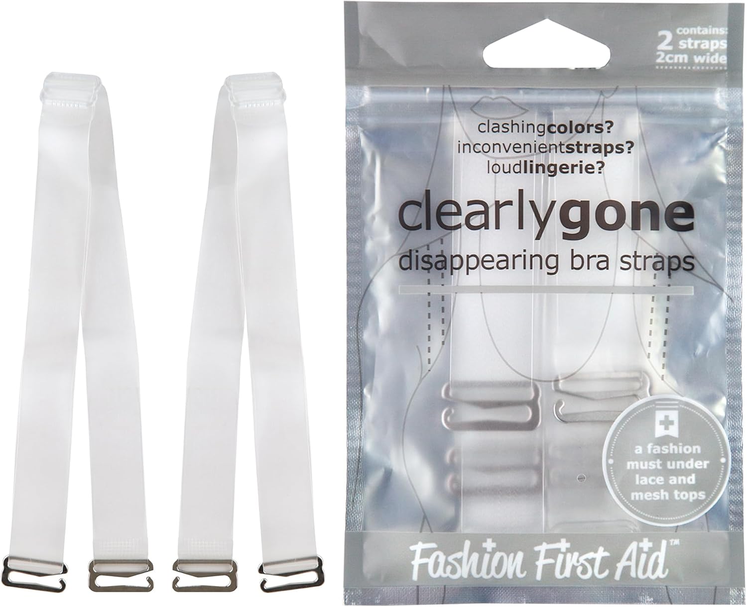 Fashion First Aid Clearly Gone Invisible Clear Bra Straps for Women – 3/4 Inch Wide with Metal Hooks – Adjustable Transparent Strap Pair for Strapless and Convertible Bras