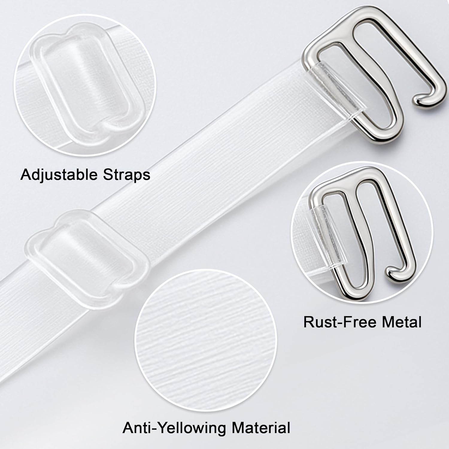 - Durable Metal Hooks That Stay Secure – Unlike common plastic alternatives, our clear strap bras feature high-quality metal hooks that securely attach to most strapless bra with clear straps styles. These strong clips prevent breakage and keep your bra strap firmly in place.
