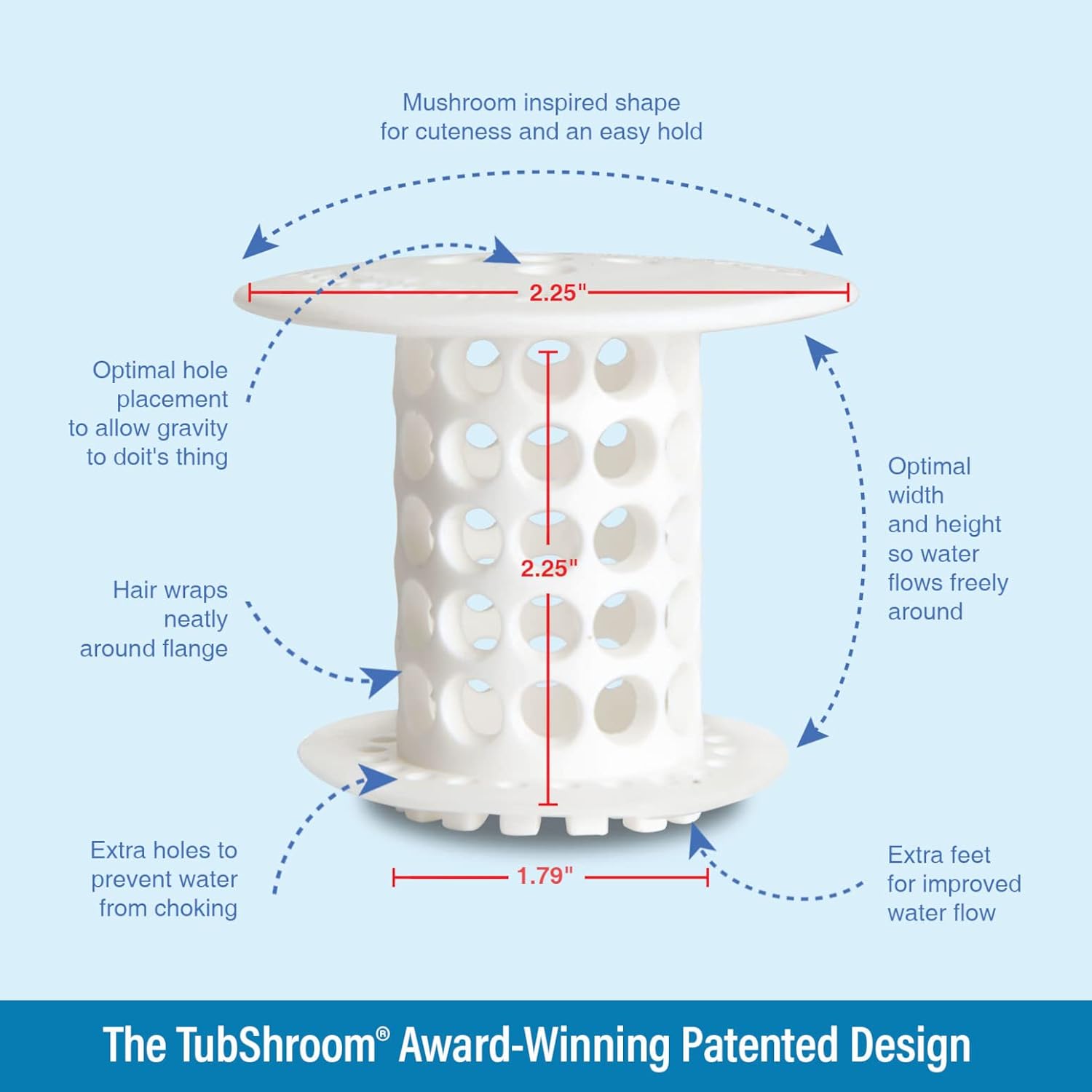 - AWARD-WINNING, PATENTED DESIGN – TubShroom drain catcher has been honored as a 2018 KBB Product Innovator Award Winner in the home improvement and bathroom gadgets category. Over six million drains are now protected by the Shroom patented design.