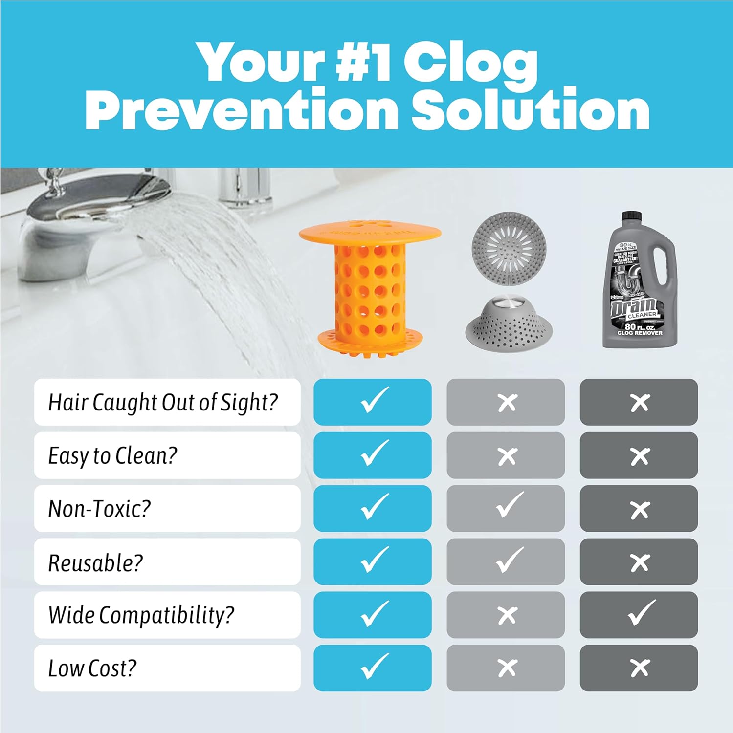 TubShroom Tub Hair Catcher Protector, Fits 1.5" - 1.75" Drain, Orange