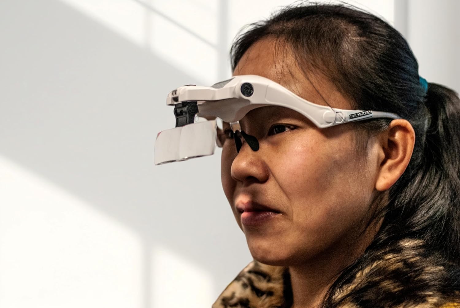 - Helmet Magnifier For Eyelash Extensions Nail Art Tattoo Features an adjustable headband and pivoting lens to customize the viewing angle and distance