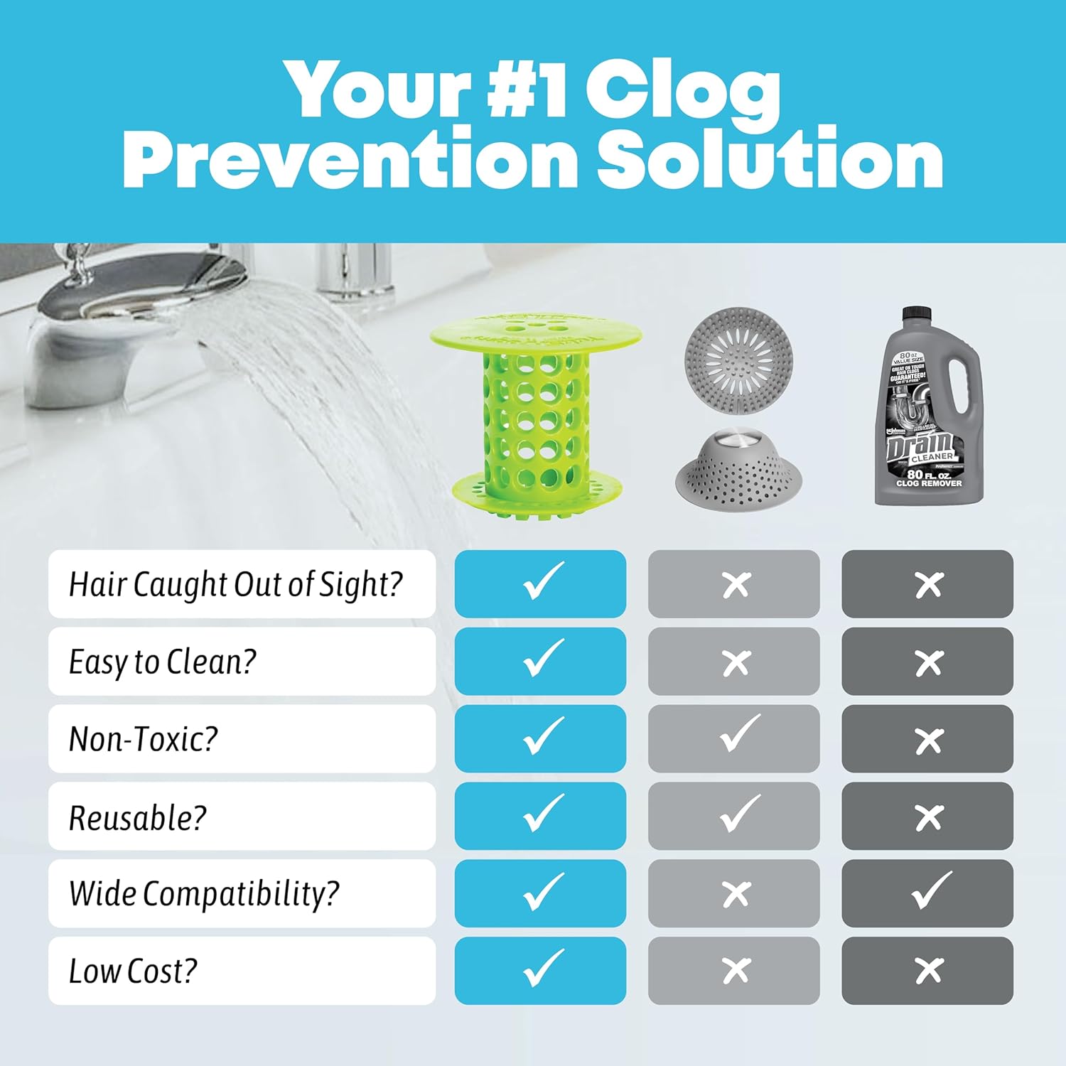 - SAVE MONEY, PROTECT THE ENVIRONMENT – With this bathtub and shower hair catcher, there are no harsh chemicals damaging your pipes and the environment. A plumber visit can be costly, and drain snakes and liquid drain cleaners aren’t always effective.