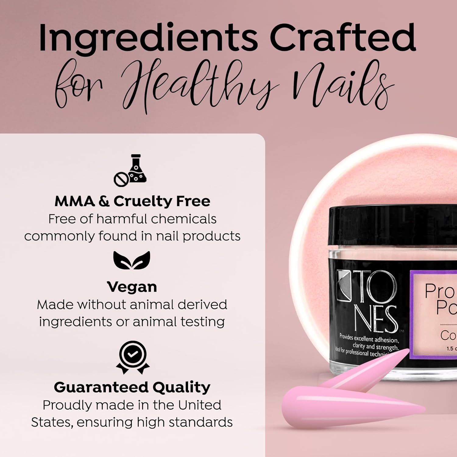 Tones Pro Acrylic Nail Powder, Cover Pink (Soft Nude Pink), (3.5 Fl Oz) - Long-Lasting & Non-Yellowing Polymer for Salon Quality Nail Extensions & 3D Art