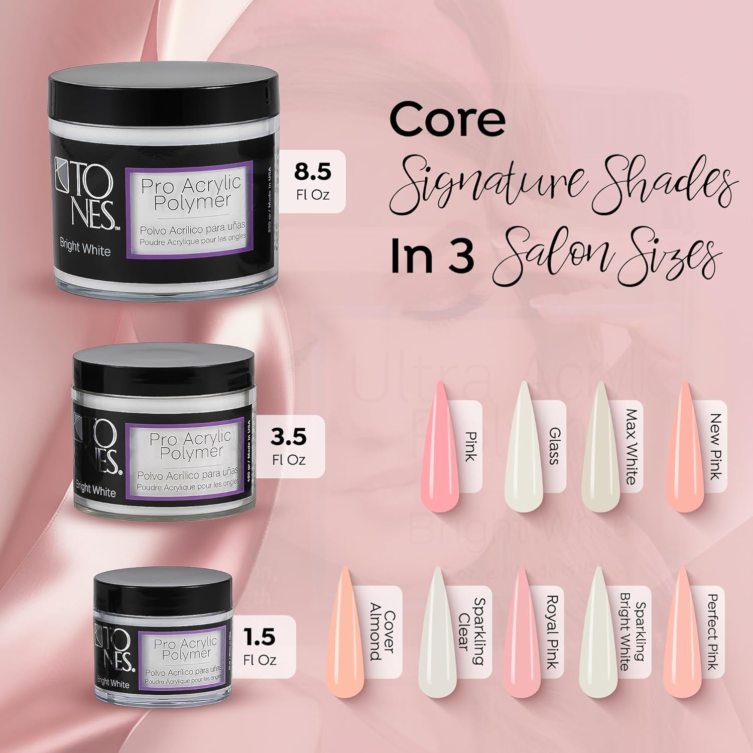 Tones Pro Acrylic Nail Powder, Sparkling Bright White (Opaque Off-White), (3.5 Fl Oz) - Long-Lasting & Non-Yellowing Polymer for Salon Quality Nail Extensions & 3D Art