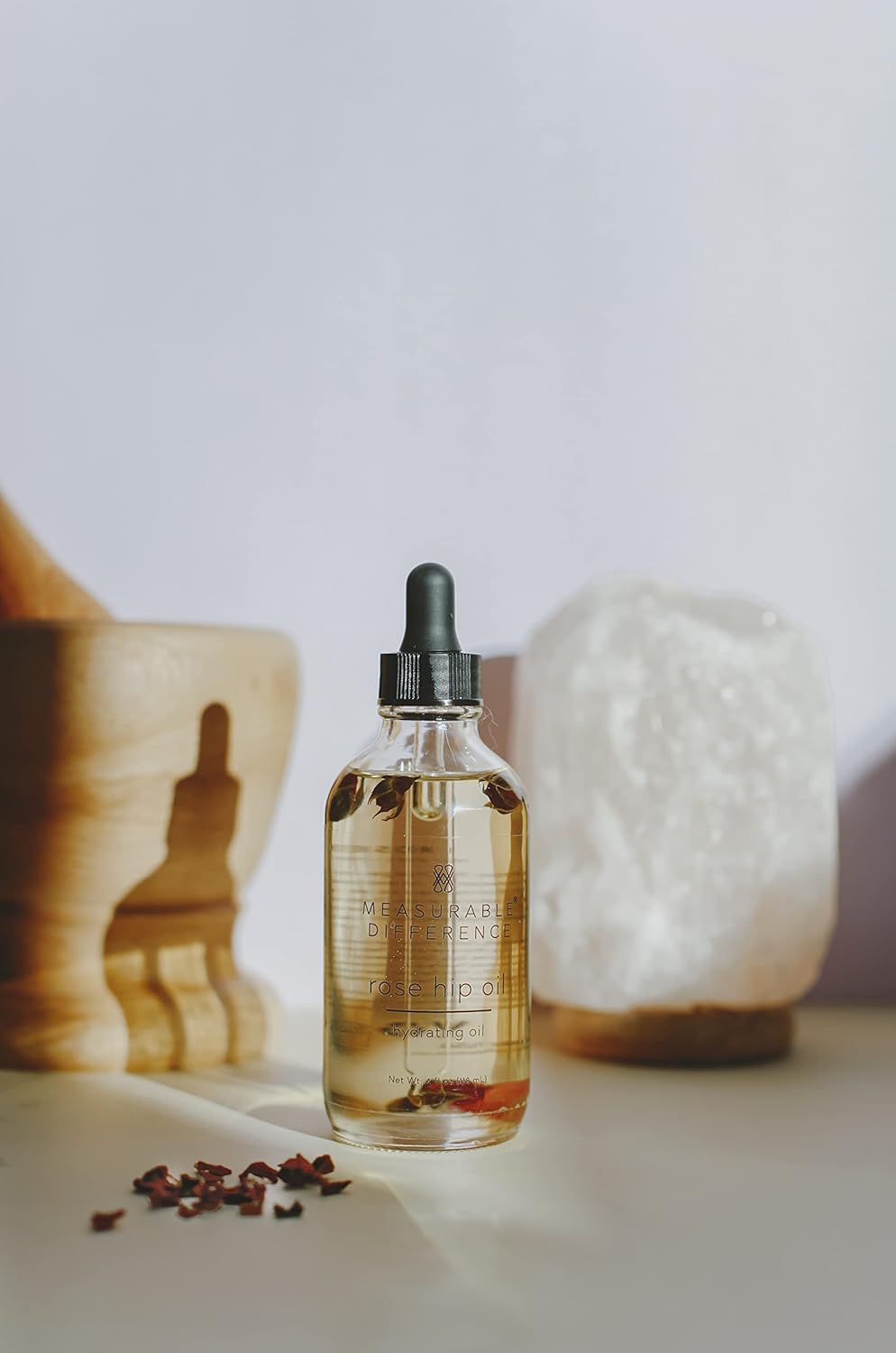 Measurable Difference Rosehip Oil for Face & Body | Blend with Olive oil & Aloe Vera | Face Moisturizer for Anti-Aging, Fine Lines | Improves Skin Tone & Fades Scars | 4 oz
