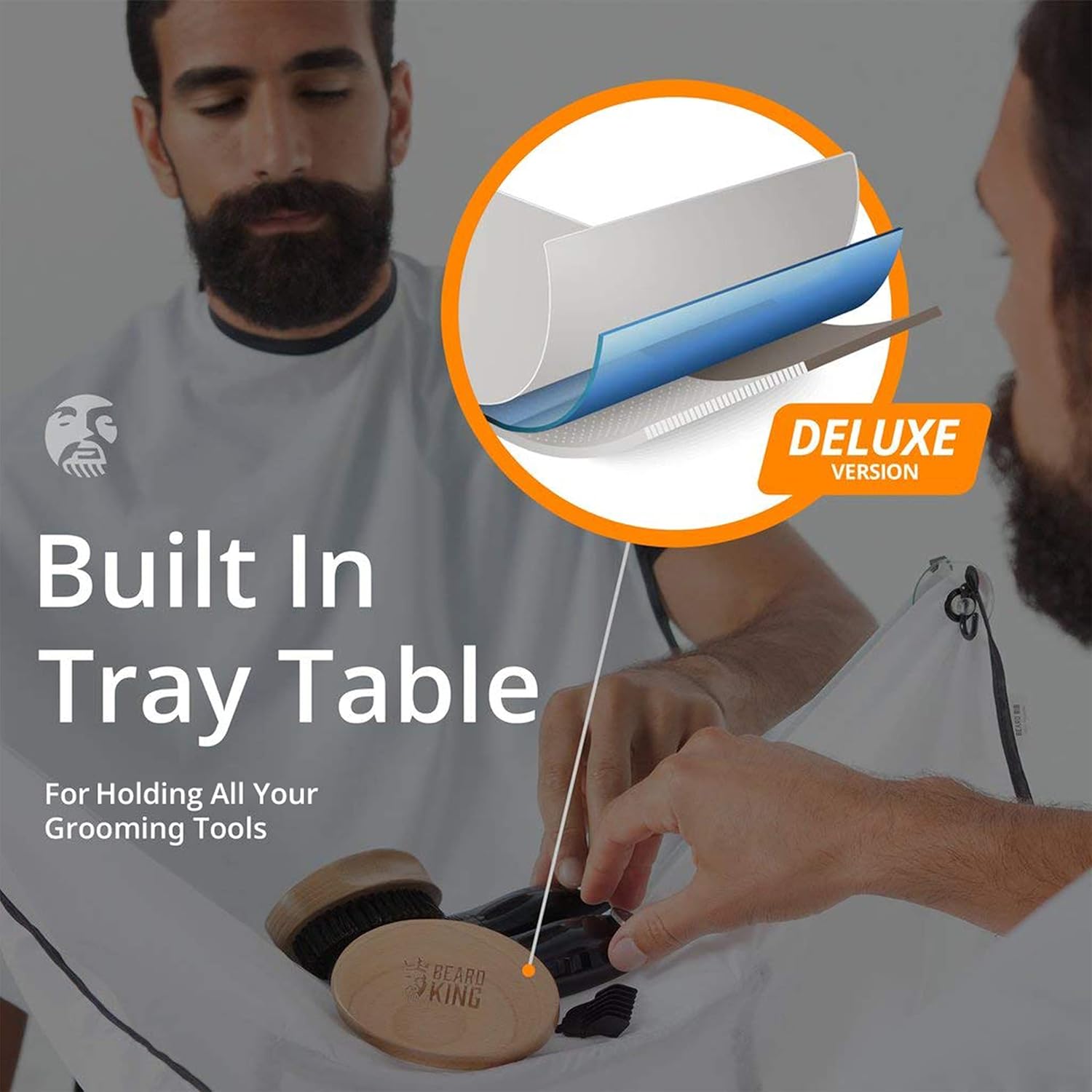- EFFECTIVE: Be prepared for any perilous quest! This deluxe set for men includes the static and stick-free beard apron with a wide scoop, built-in-tray for trimming tools, replacement parts, and a travel pouch with room for grooming accessories.