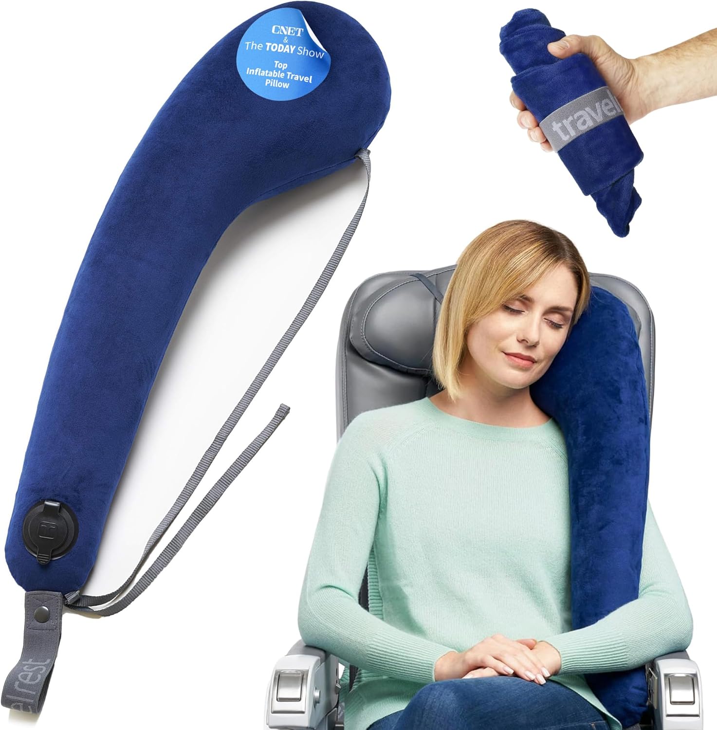 - COMPACT PORTABILITY: Convenience meets comfort with the Travelrest travel pillow. Expertly designed to roll up into a small, easy-to-pack size, it fits effortlessly into your carry-on or backpack. Whether you're jet-setting across the globe or heading on a weekend getaway, this inflatable travel pillow is always ready to deliver exceptional support and relaxation. Perfect for long flights, road trips by car or bus, or any adventure, itâs your go-to travel companionâcompact, lightweight, and ready to provide the ultimate comfort wherever your journey takes you.