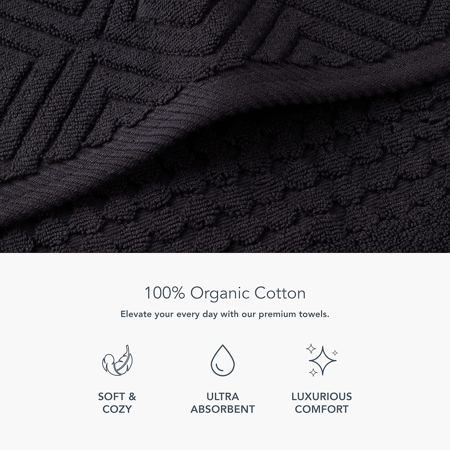 - THE LUXE DETAILS: Our contemporary bath towel design features a double-faced intricate diamond sculpted jacquard pattern that gives a supreme, comforting texture. Diagonal twill hem edges complement their spa-like aesthetic.