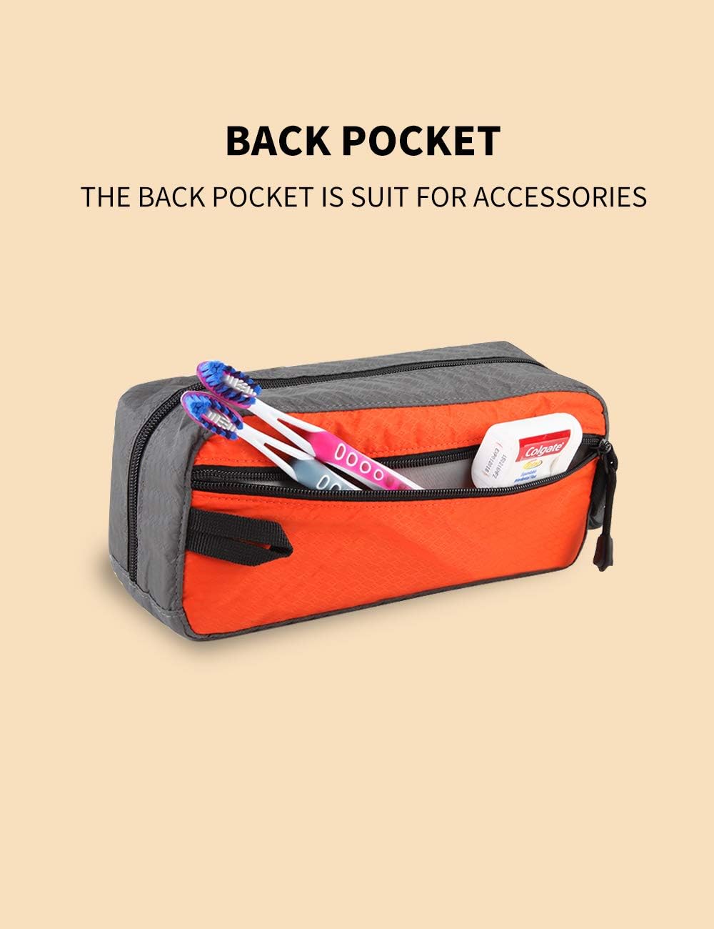 - LOTS OF POCKETS: In order to make things well organized, we designed of lots pockets for partition articles. Main compartment is large enough for bottles. In one side, a center pouch opens with a webbed waterproof zipper pouch. And in another side has been divided into 2 elastic mesh pouches. Also there is one zipper pouch for keeping small items outside in back of the pouch.