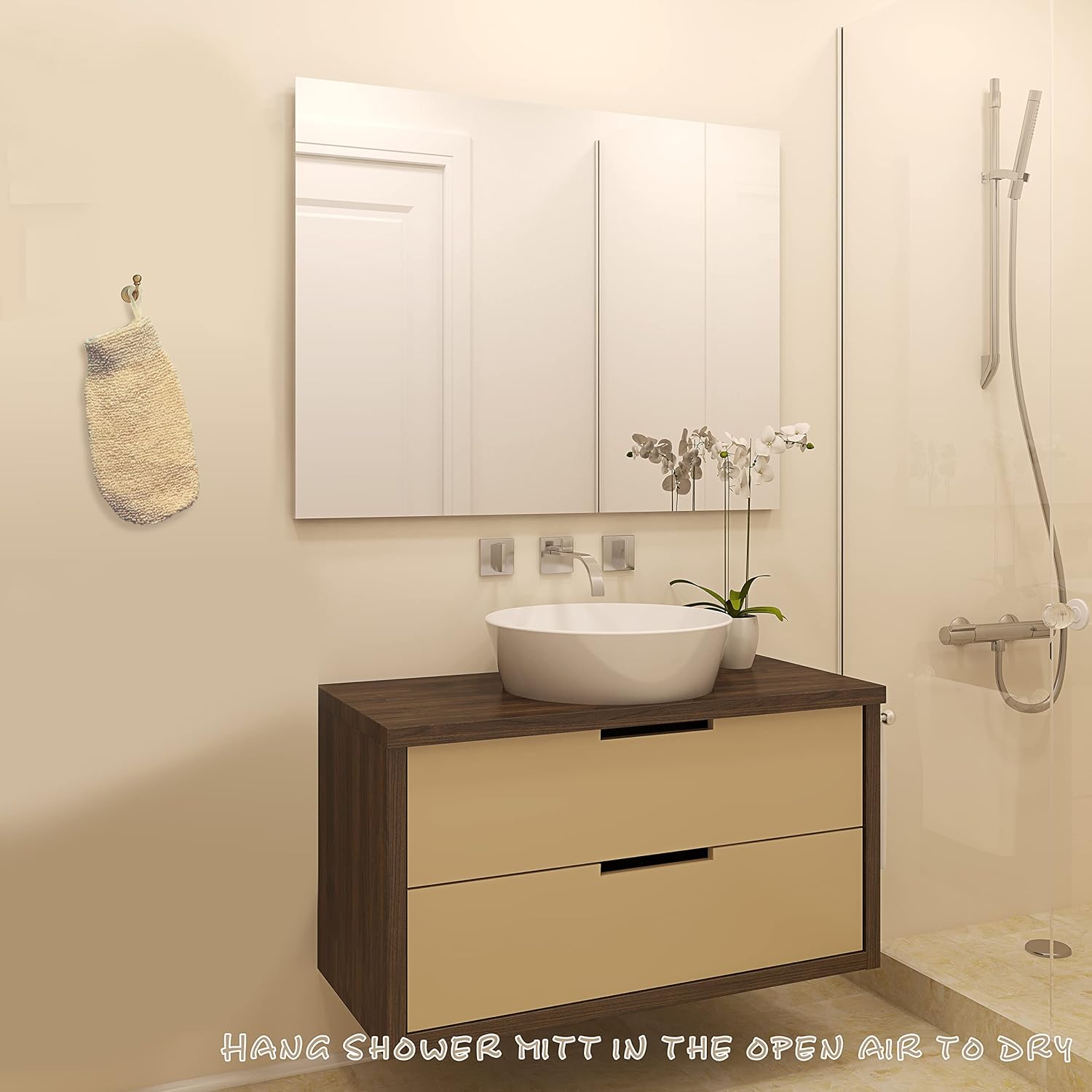 Natural Ramie Dual Sided Exfoliating Glove Hand Mitt Mitten Shaped Back and Body Shower Bath Scrubber White, Remove Dead Skin Machine Washable, Pack of 2