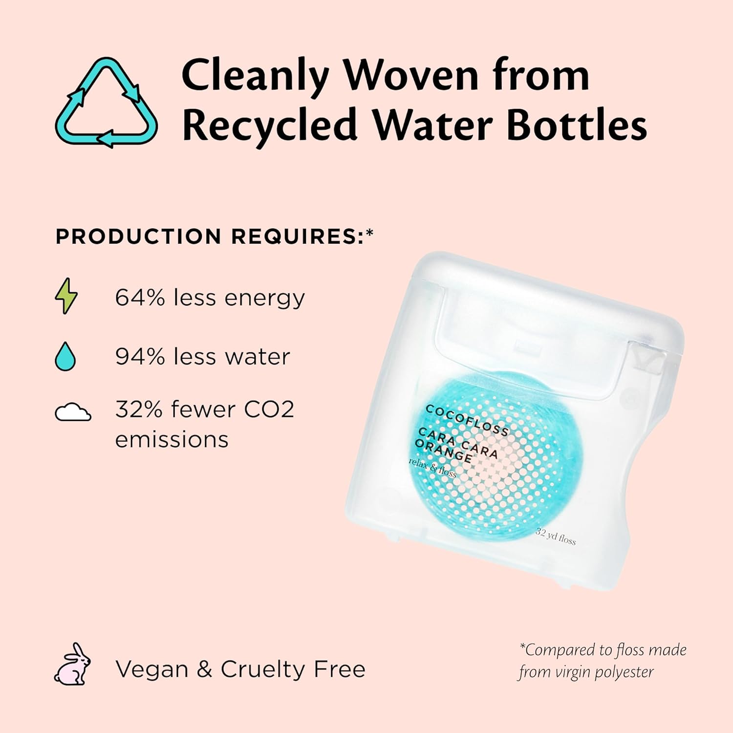 - PLANET-FRIENDLY AND CRUELTY-FREE: Cleanly spun from ~85% recycled water bottles; refillable dispenser; less waste than plastic picks and flossers; free of parabens and sulfates; no irritating flavors; Leaping Bunnyâcertified cruelty-free.