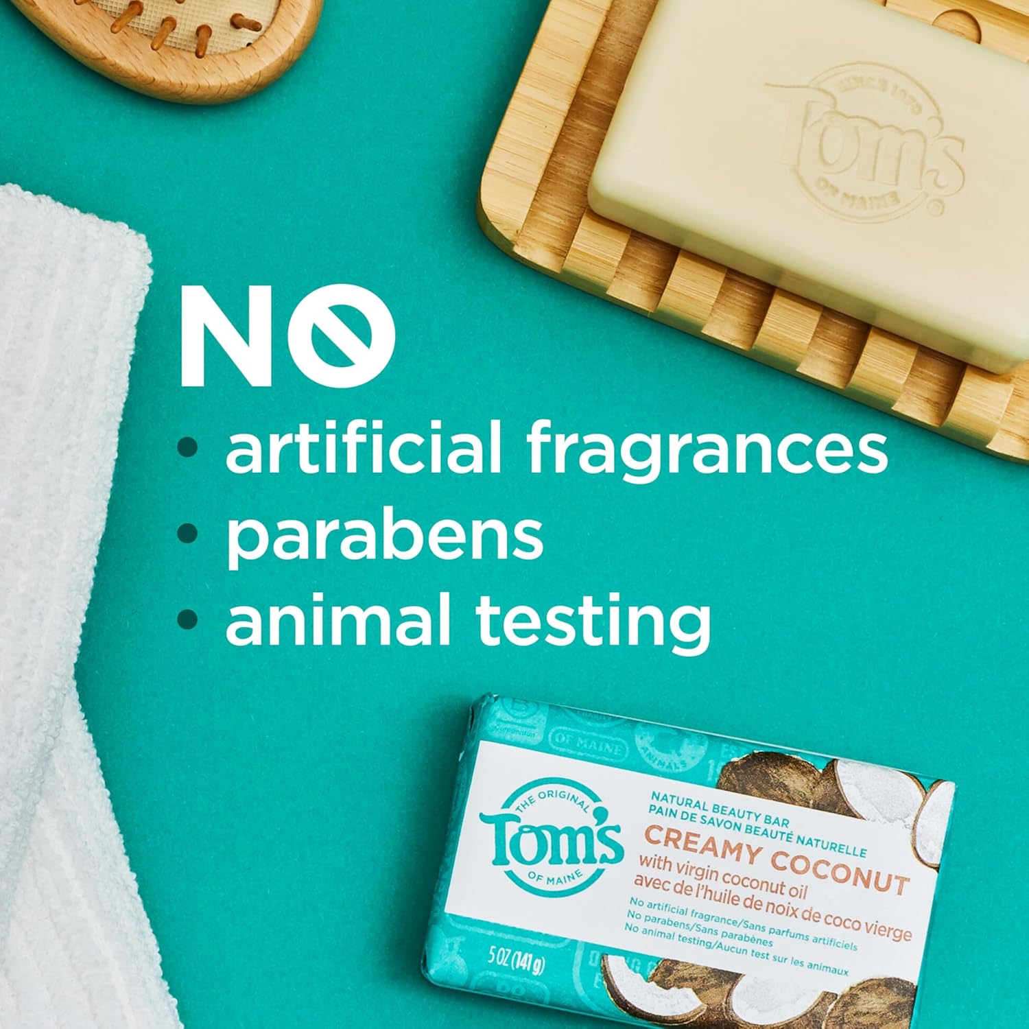 - WHAT YOU'LL GET: Six 5-ounce bars of Tom's of Maine Natural Beauty Bar in Creamy Coconut Scent