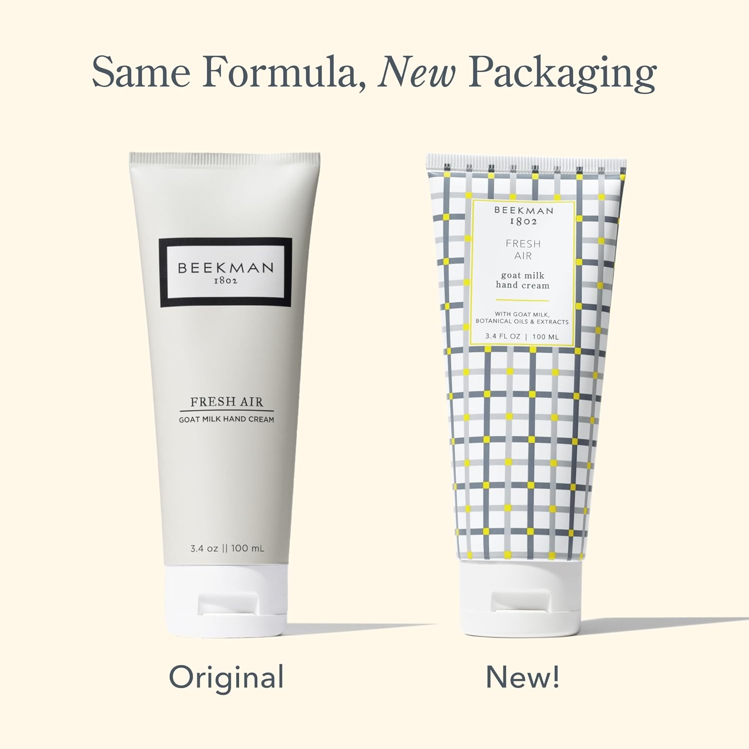 Beekman 1802 Pure Goat Milk Hand Cream, Fresh Air - Scented - 3.4 oz - Moisturizing Lotion for Dry Skin - Anti-Aging Hydration - Good for Sensitive Skin - Cruelty Free - Packaging May Vary