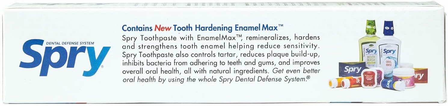 - NATURAL TOOTHPASTE WITH INGREDIENTS YOU CAN TRUST: Spry peppermint xylitol toothpaste contains natural, teeth whitening ingredients like xylitol, a plant-derived sweetener, that provides numerous advantages in oral care like keeping the effects of toothpaste lasting long after youâre done brushing, sodium methyl cocoyl taurate from coconut oil, and soothing aloe vera. Spry peppermint xylitol toothpaste also contains natural peppermint flavor sourced from organic peppermint oil.