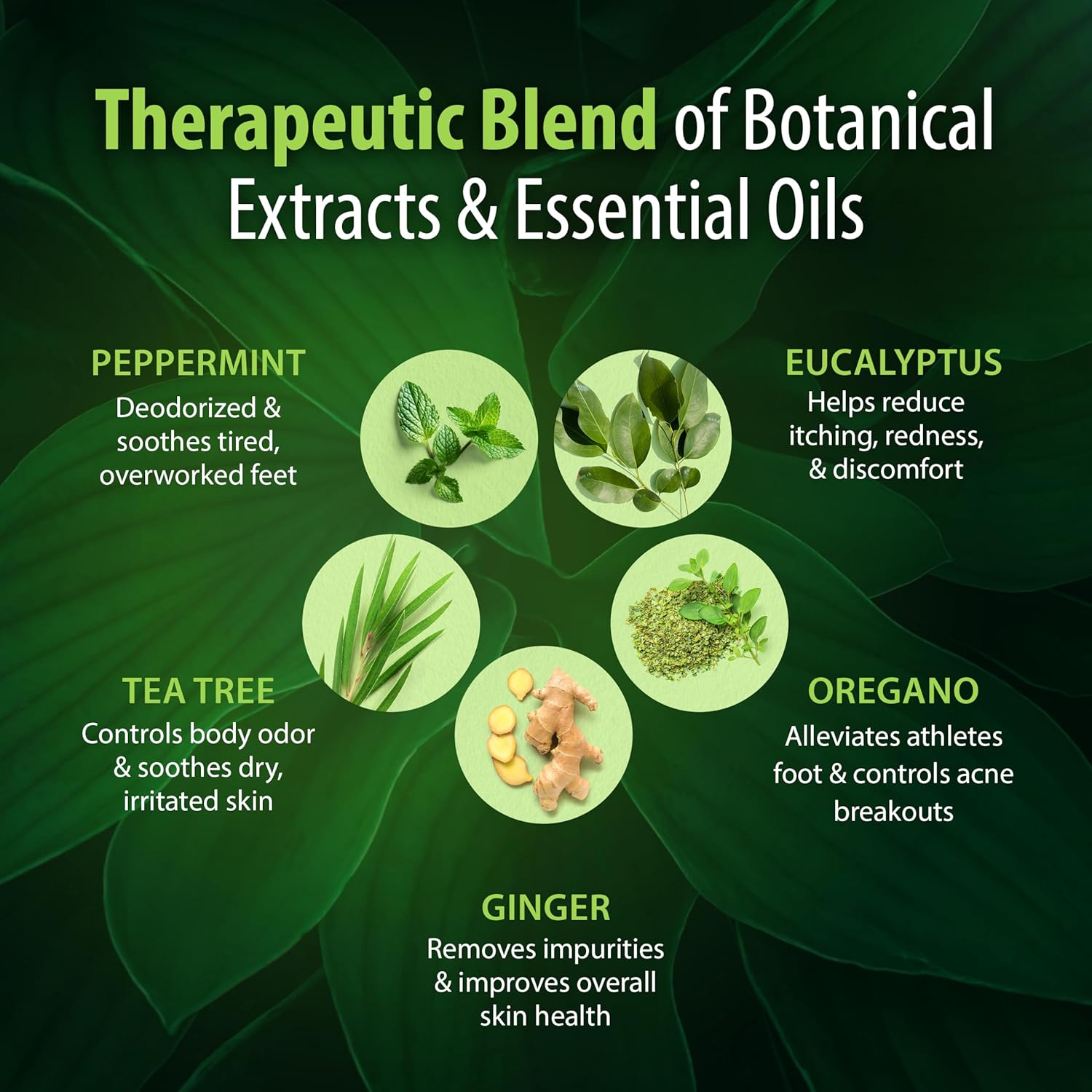 - Perfect for athletes and active workers. A great natural defense against skin concerns and irritations commonly associated with an active lifestyle. Get rid of foot odor that is commonly associated with sport, fitness, or excessive sweating. An easy solution to all your skin-related discomforts!