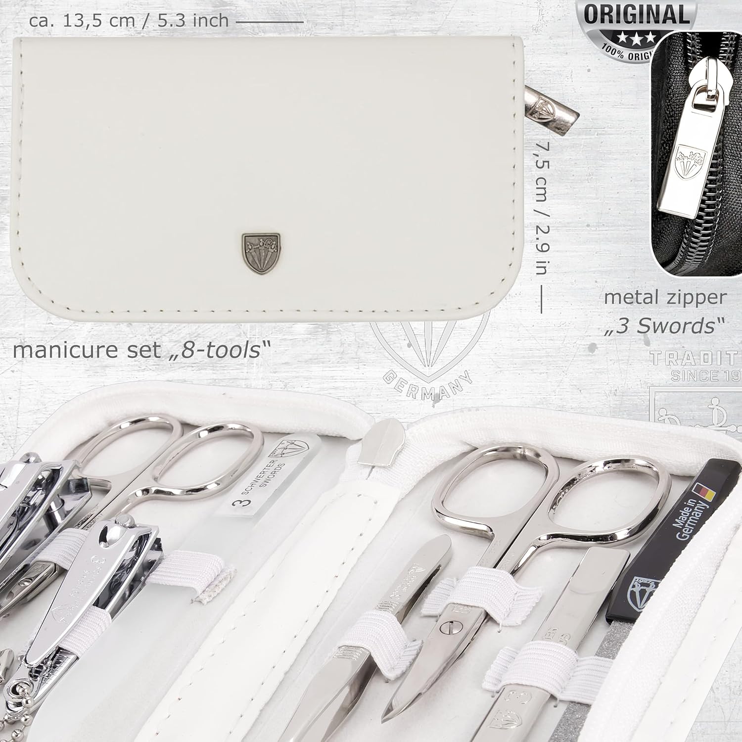 3 Swords Germany - brand quality 8 piece manicure pedicure grooming kit set synthetic leather case white - Made in Germany