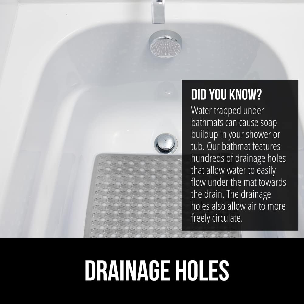 - EASY WATER DRAINAGE: hundreds of drainage holes allow for water to easily flow under the bath tub mat and toward the drain, helping to prevent water from sitting stagnant beneath the shower mat in your tub or shower