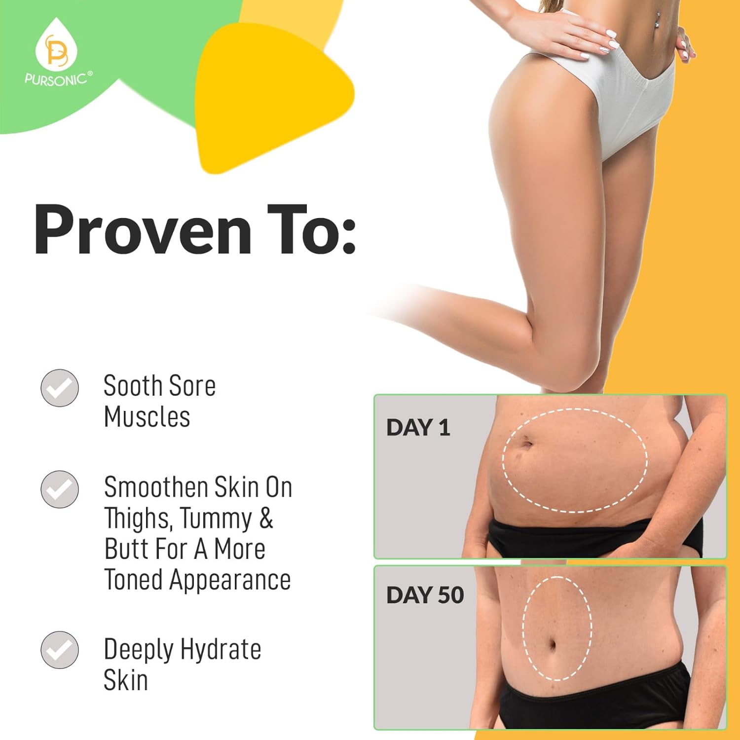 Pursonic Anti Cellulite Cream & Muscle Relaxation Hot Cream - Reduce Varicose Veins, Firm, Tighten & Improve Skin Texture - Hydrate with All-Natural Ingredients for Legs, Arms, Tummy, Butt & Thighs
