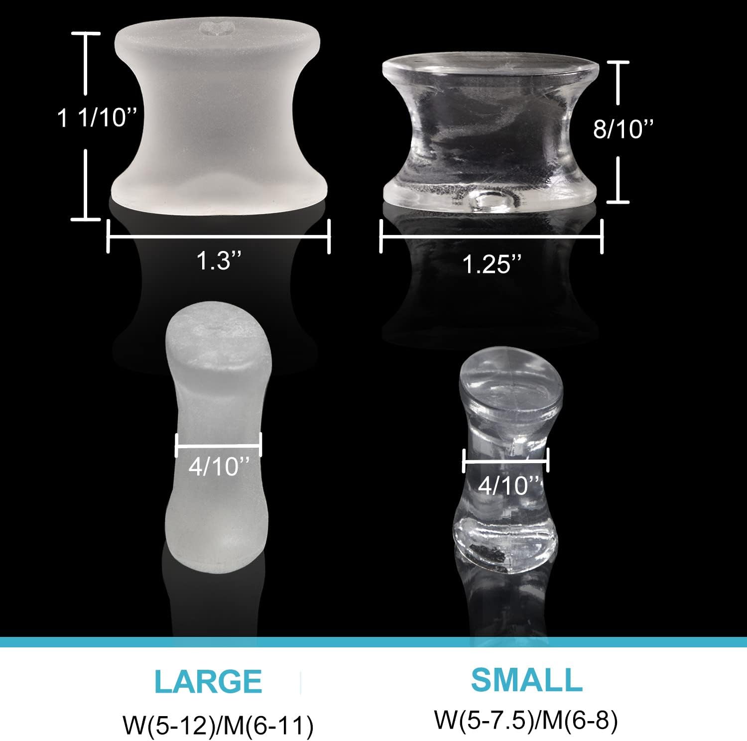 - 【Small Size】 If you have small feet, we recommend you to try this small size between the 1st and 2nd toes. If this small size is too thick or too thin for you, please choose other spacers of 3/10’’, 1/2’’, 6/10’’ thickness from our shop.