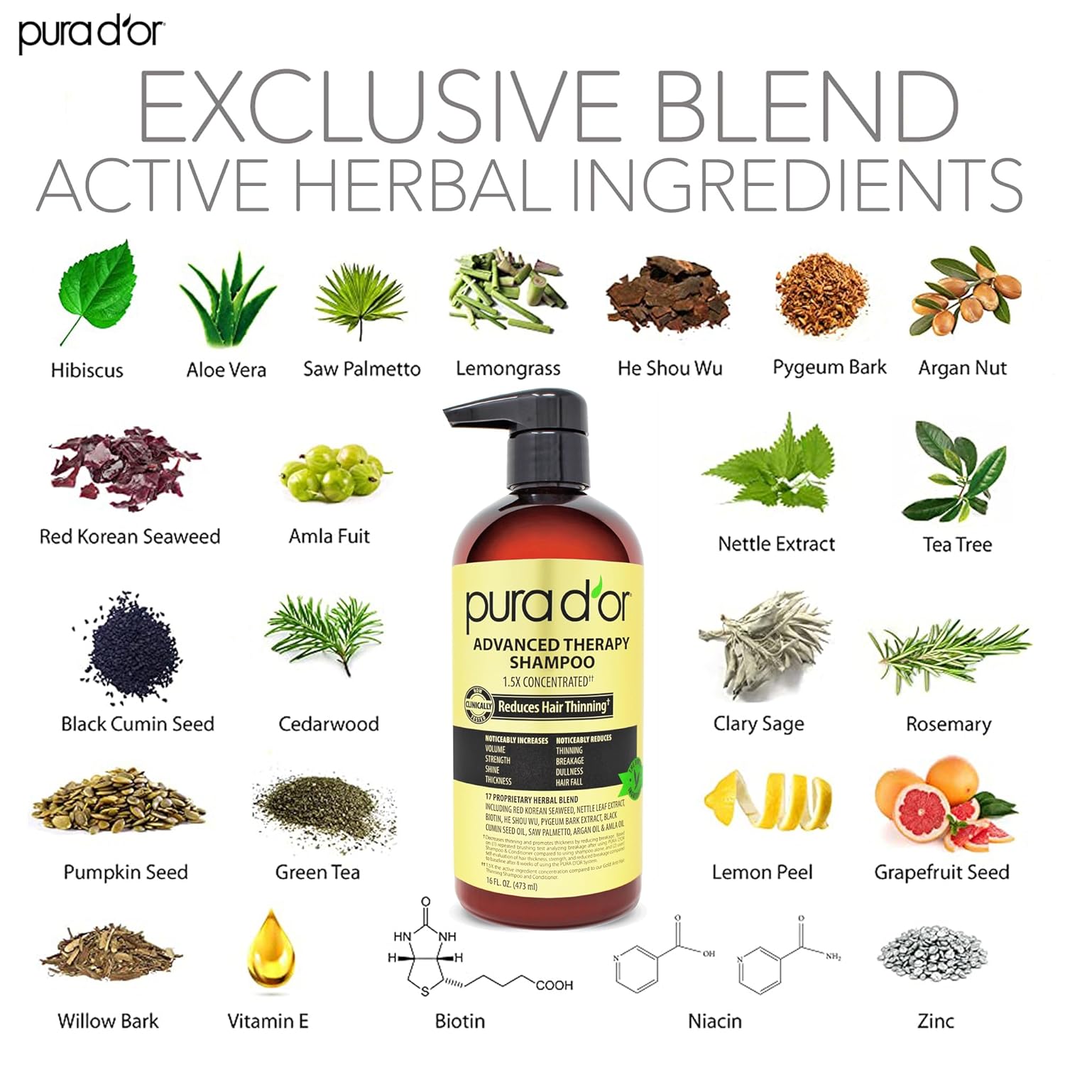 PURA D'OR Advanced Therapy Biotin Shampoo & Conditioner Hair Care Set For Hair Thinning, CLINICALLY TESTED Effective Results, Herbal Hair Thickening Products For Women & Men, 16oz x2