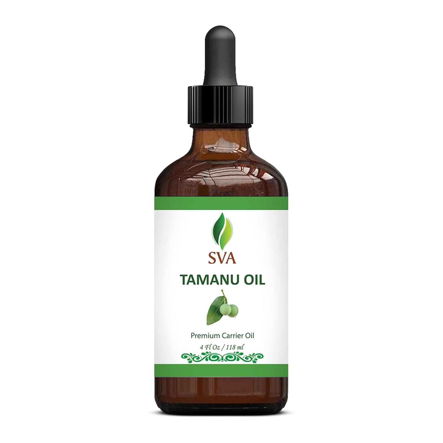 SVA Tamanu Oil - 4 Fl Oz – 100% Natural Cold Pressed Tamanu Oil - for Face, Skin Care, Hair Care, Scalp Massage & Body Massage – Carrier Oil with Dropper