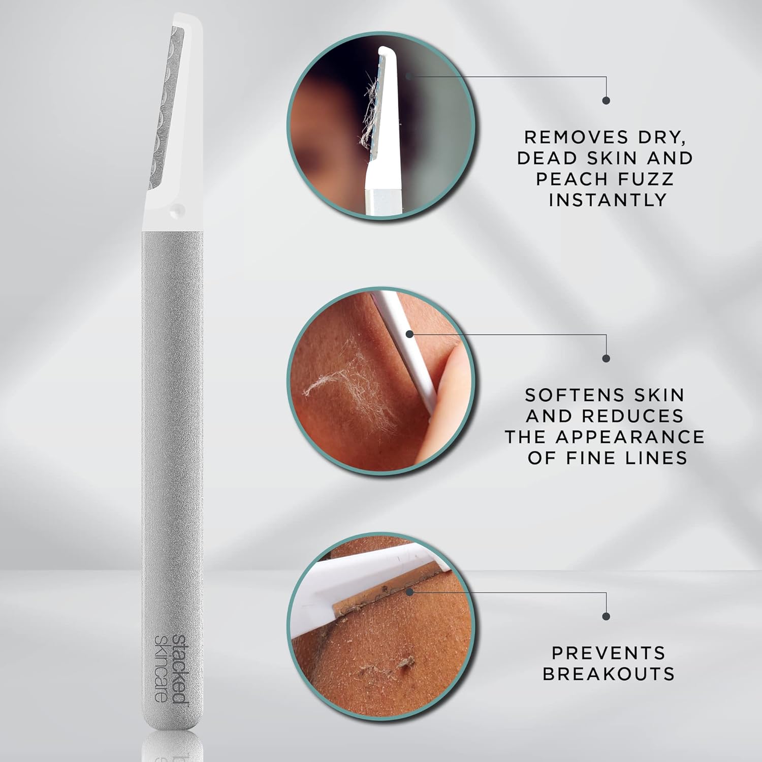 StackedSkincare Dermaplaning Replacement Blades - 3 Pack Face Razor Refills for Women, Peach Fuzz Remover and Exfoliating Tool, Fits StackedSkincare Dermaplane Tool