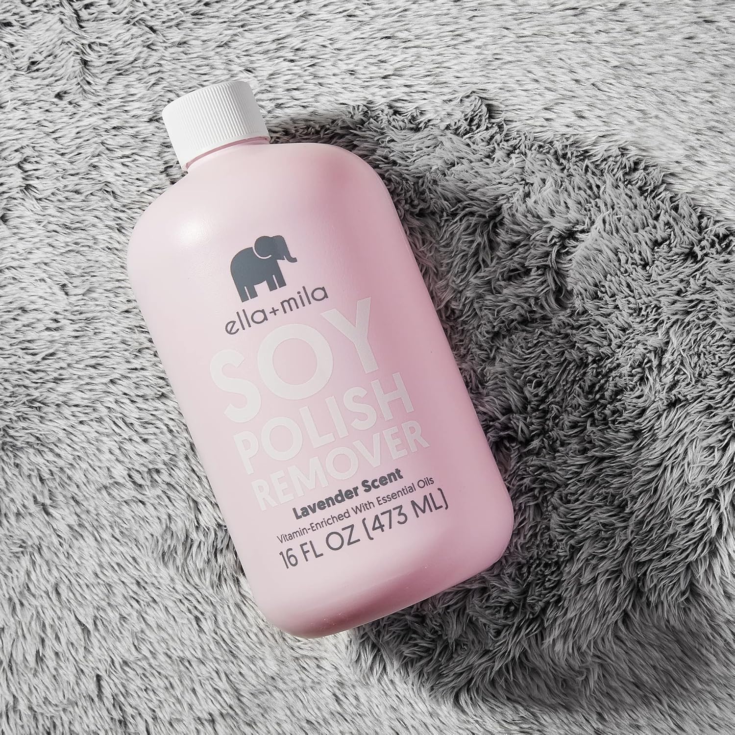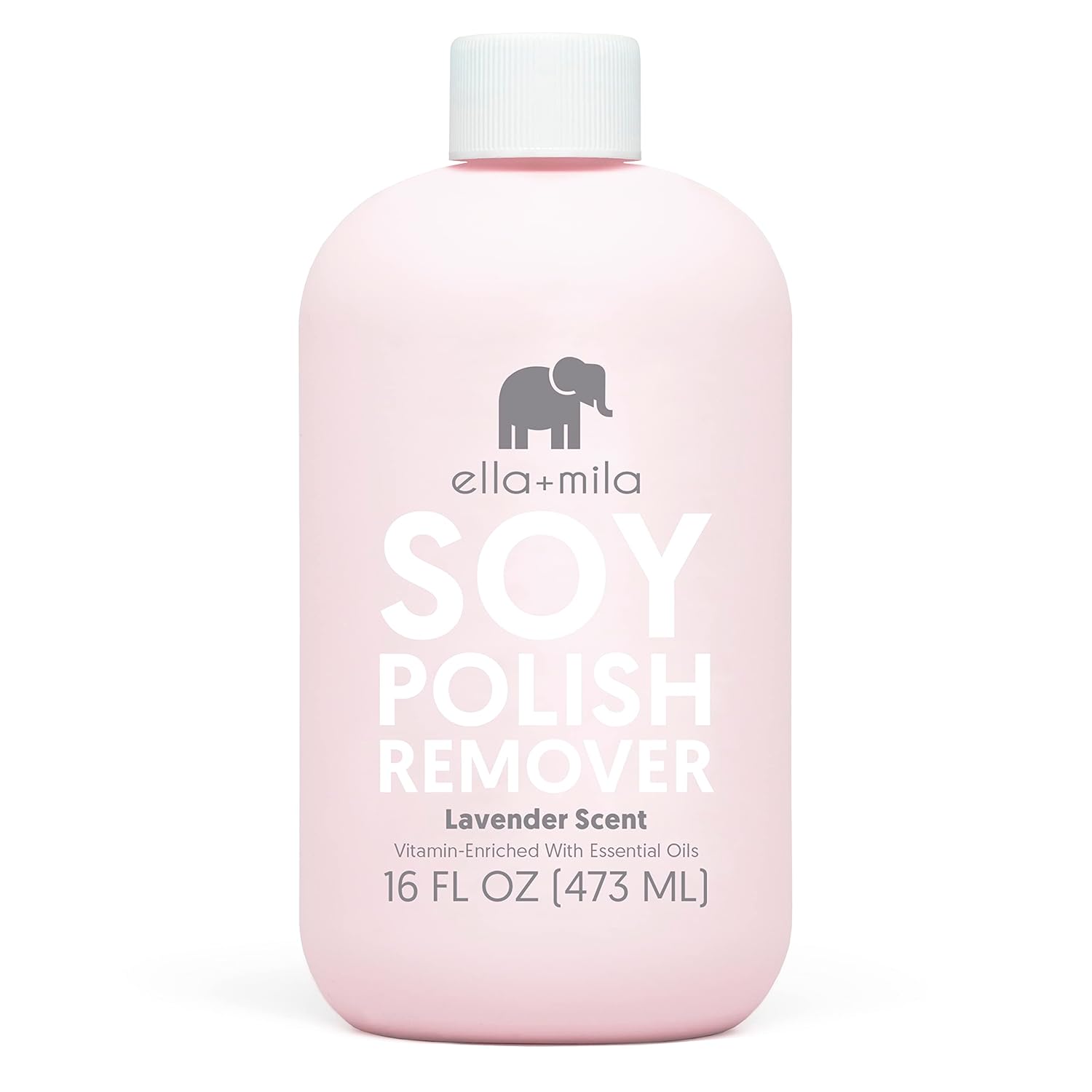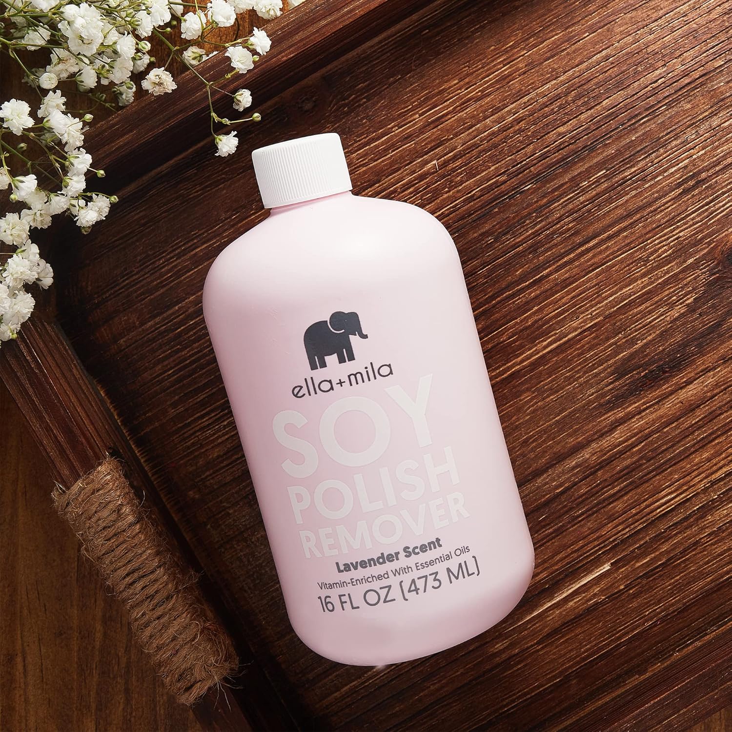 ella+mila Soy Nail Polish Remover Non-Acetone Nail Polish Remover - Non-Toxic Fingernail Polish Remover - For Natural Nail Polishes - Enriched with Lavender Essential Oil & Vitamins A,C & E (16 fl oz)